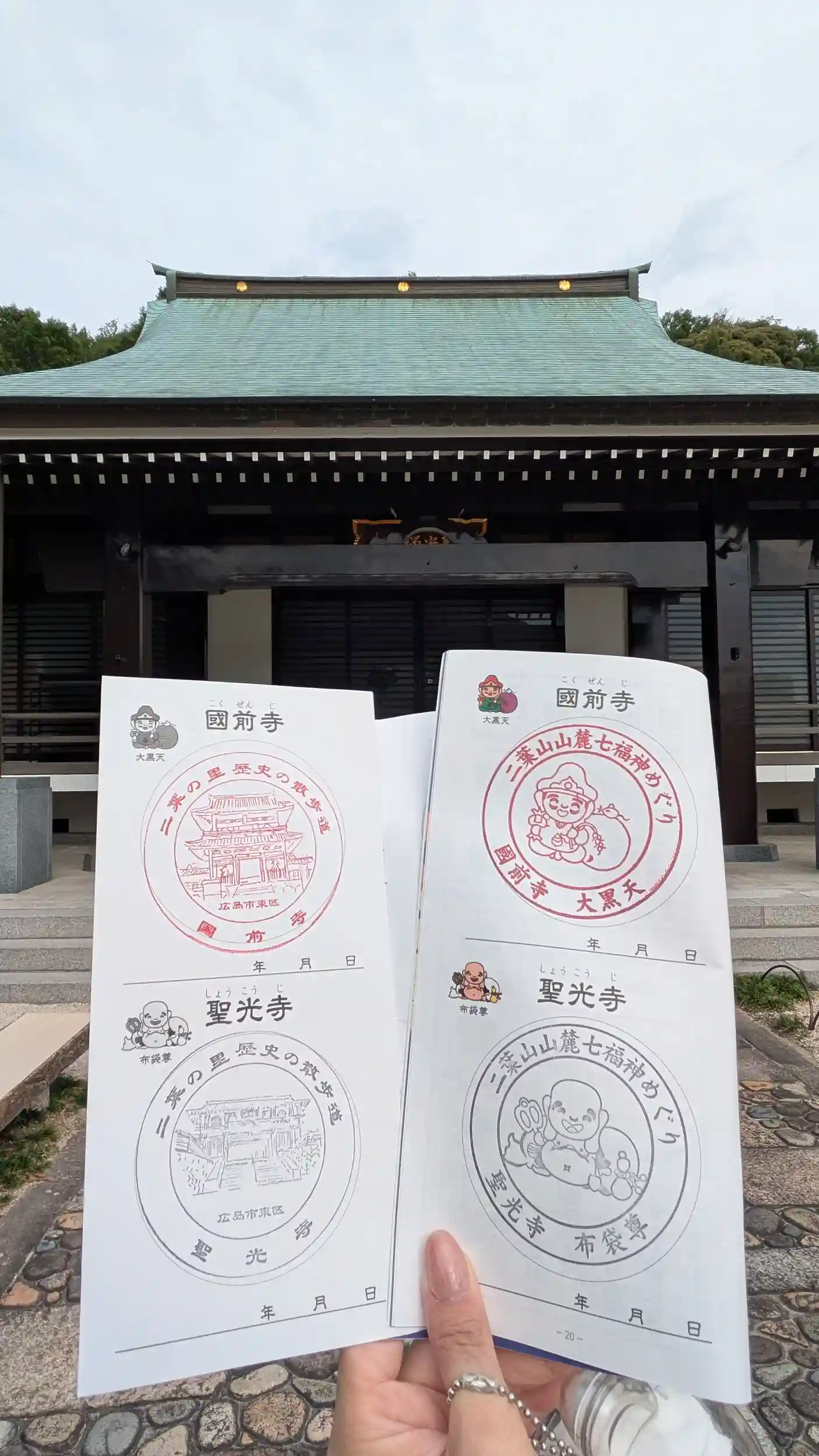 広島駅から徒歩圏内とは思えないほど静かで落ち着いていて広い境内🥹✨布袋尊の像が迎えてくれ、十六羅漢や金色の観音像など見どころもたくさん!