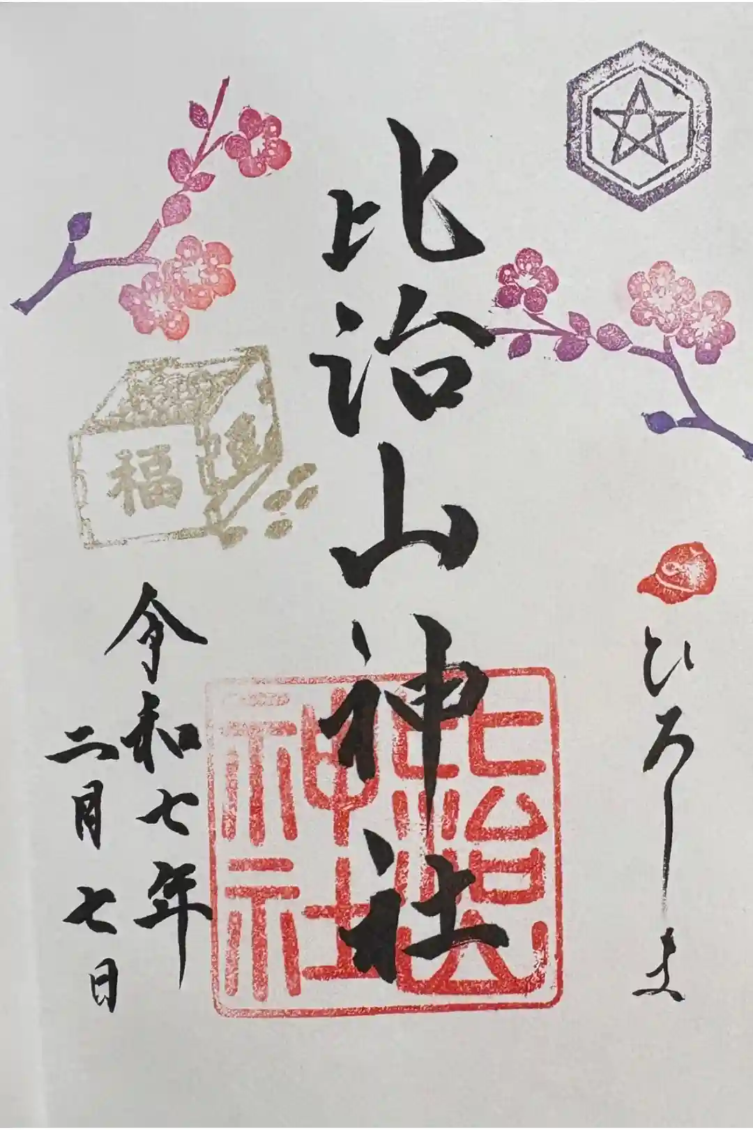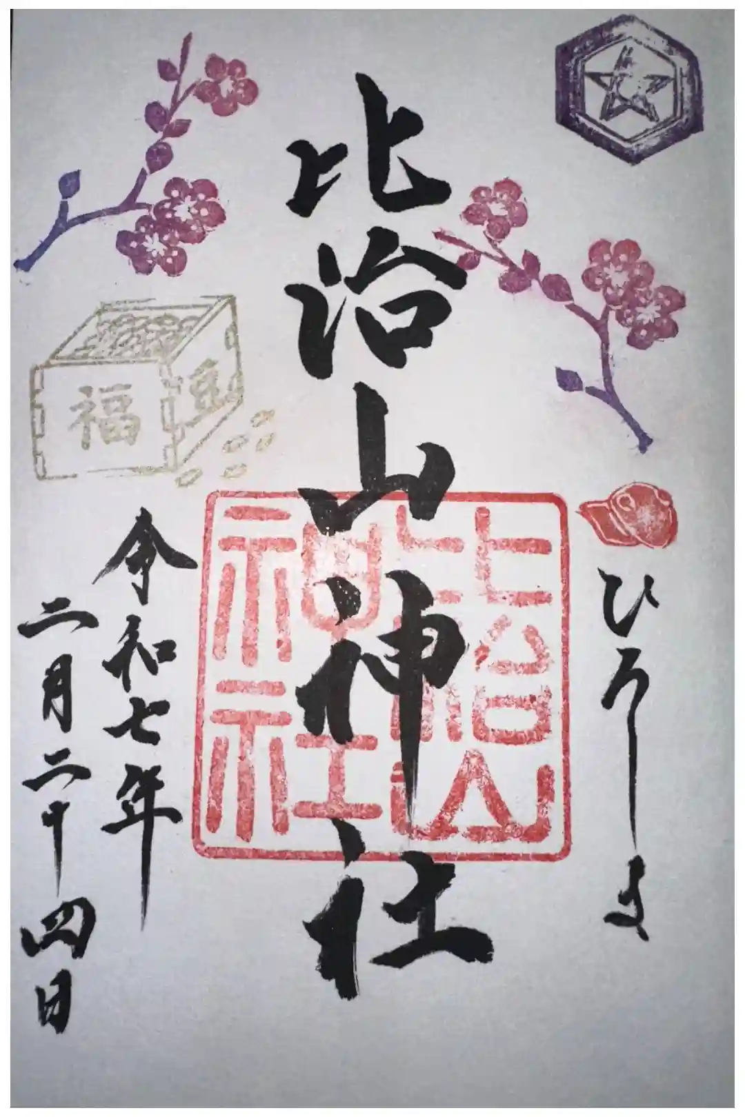 2月の御朱印です。直書きしていただきました。御初穂料500円。