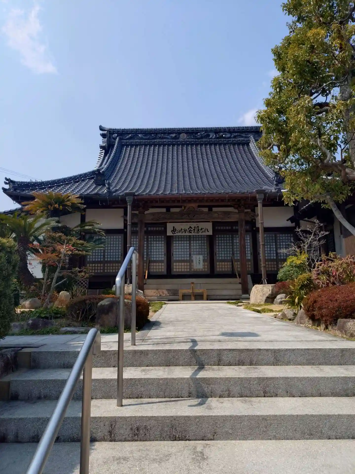 静かな環境の中落ち着いてお参りさせていただきましたが、本堂の前に掲げられている、「世のなか安穏なれ」という言葉が非常に印象的でした。