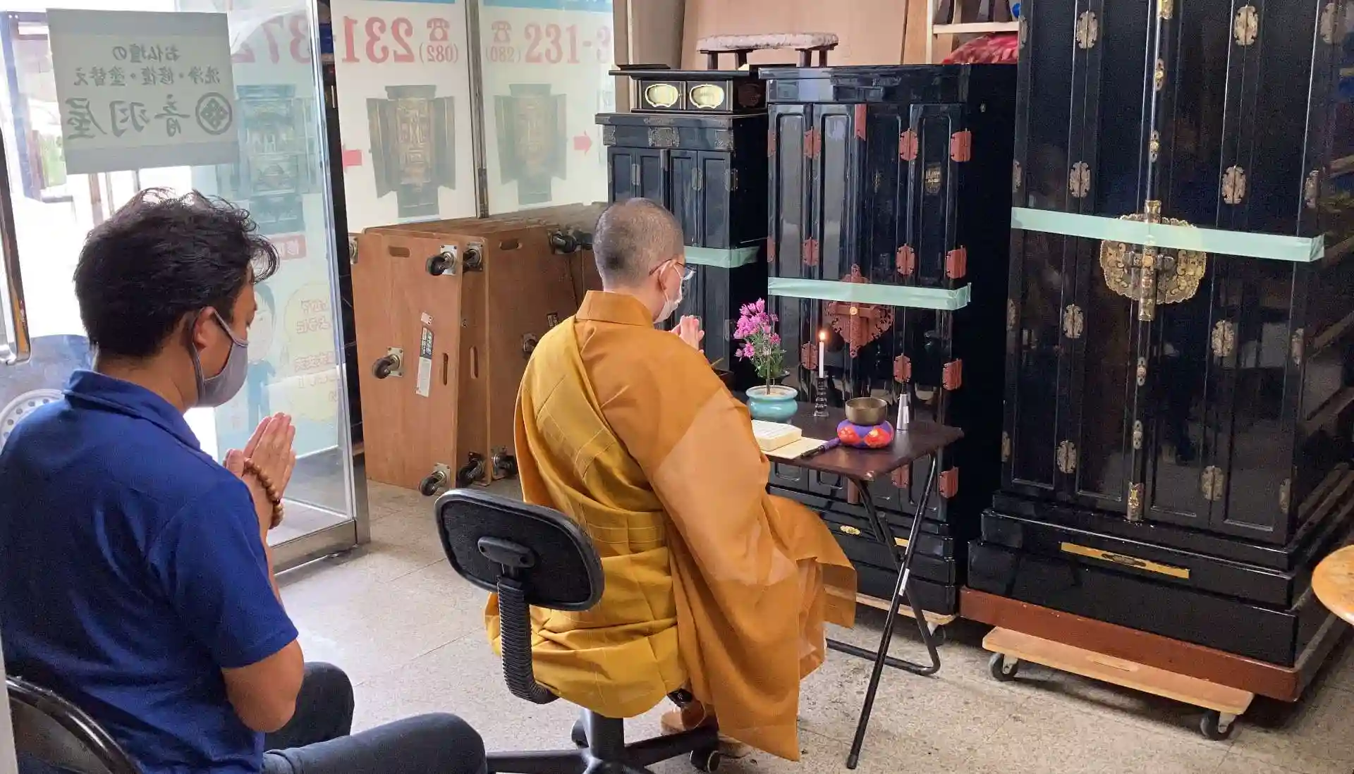 本日、広島でお仏壇の修理を専門にしている業者さんからご依頼があり、お家の取り壊しや売却、様々なご事情で処分をしたいので、と、 引き取られたご仏壇の最後のご供養をさせて頂きました。