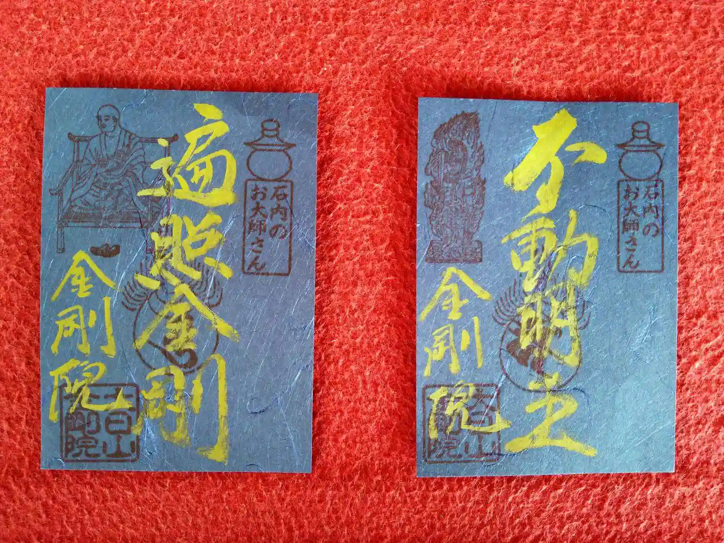 【石内のお大師さん(弘法大師)】・【不動明王】の二体の金墨ご朱印の用紙を新しくしました。