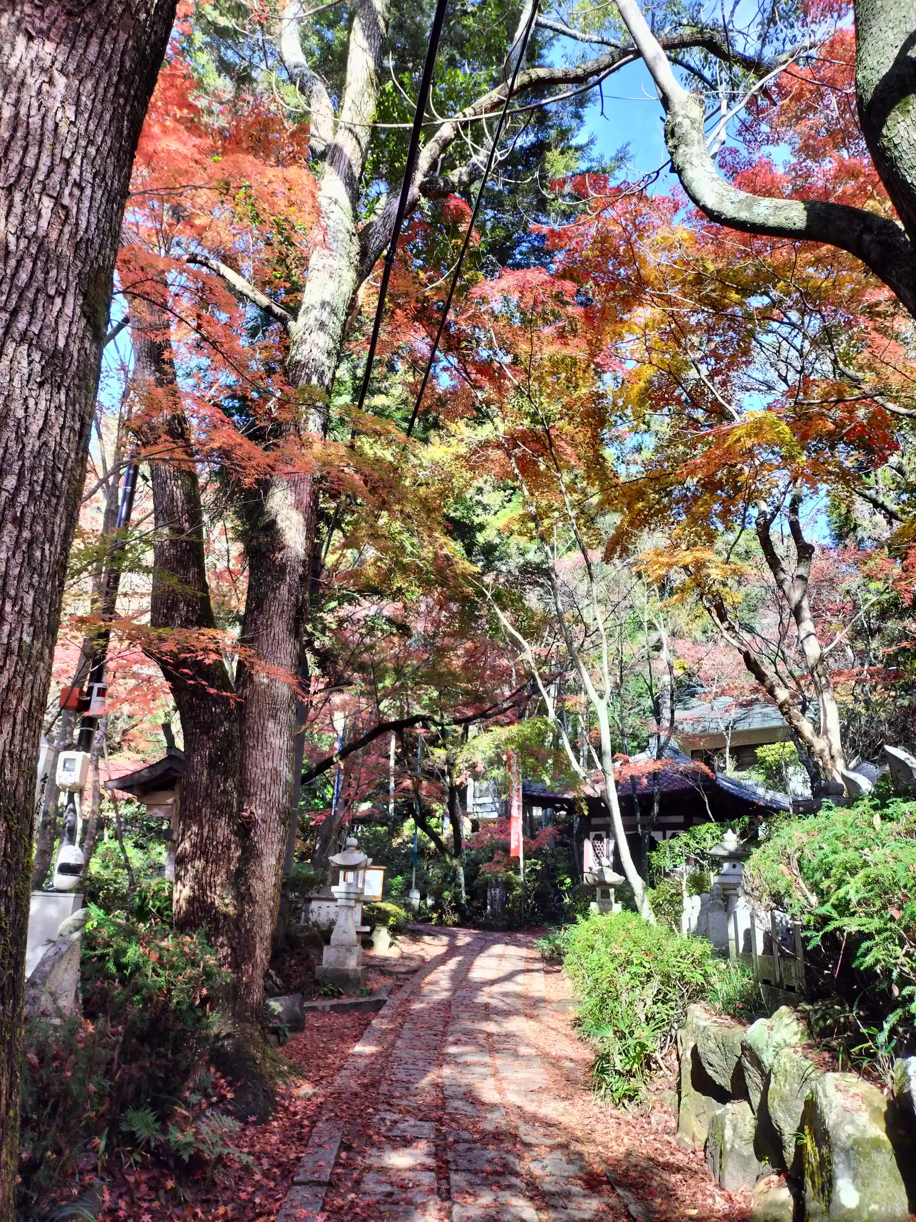 お寺参拝には、すぐ下の駐車場まで車がおけます。登山道の入口になっていて、石で作った像が並んでおり、紅葉のシーズンなので綺麗です。滝壺には、錦鯉が優雅に泳いでいました。