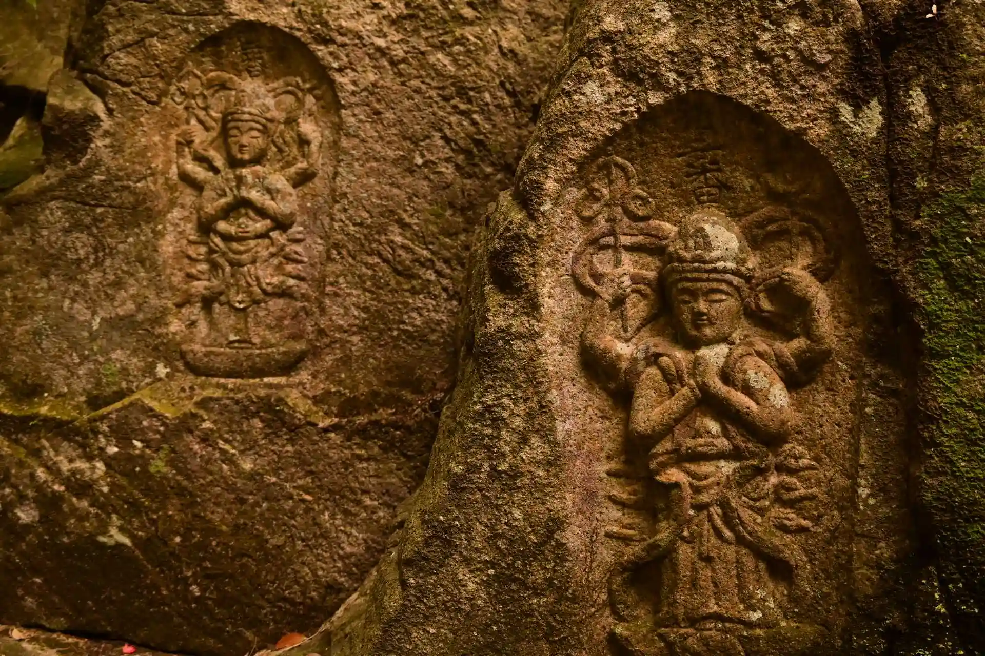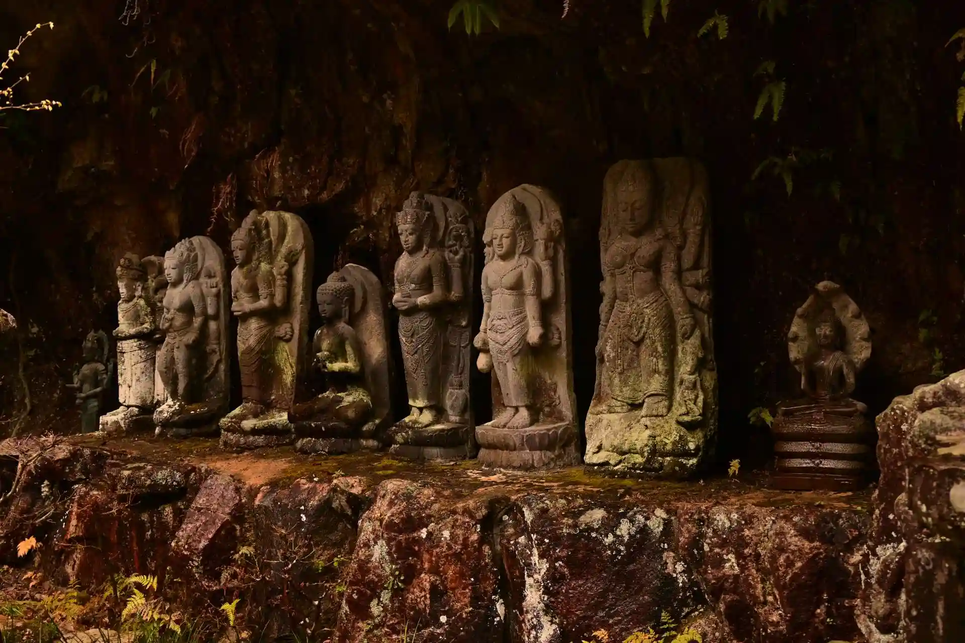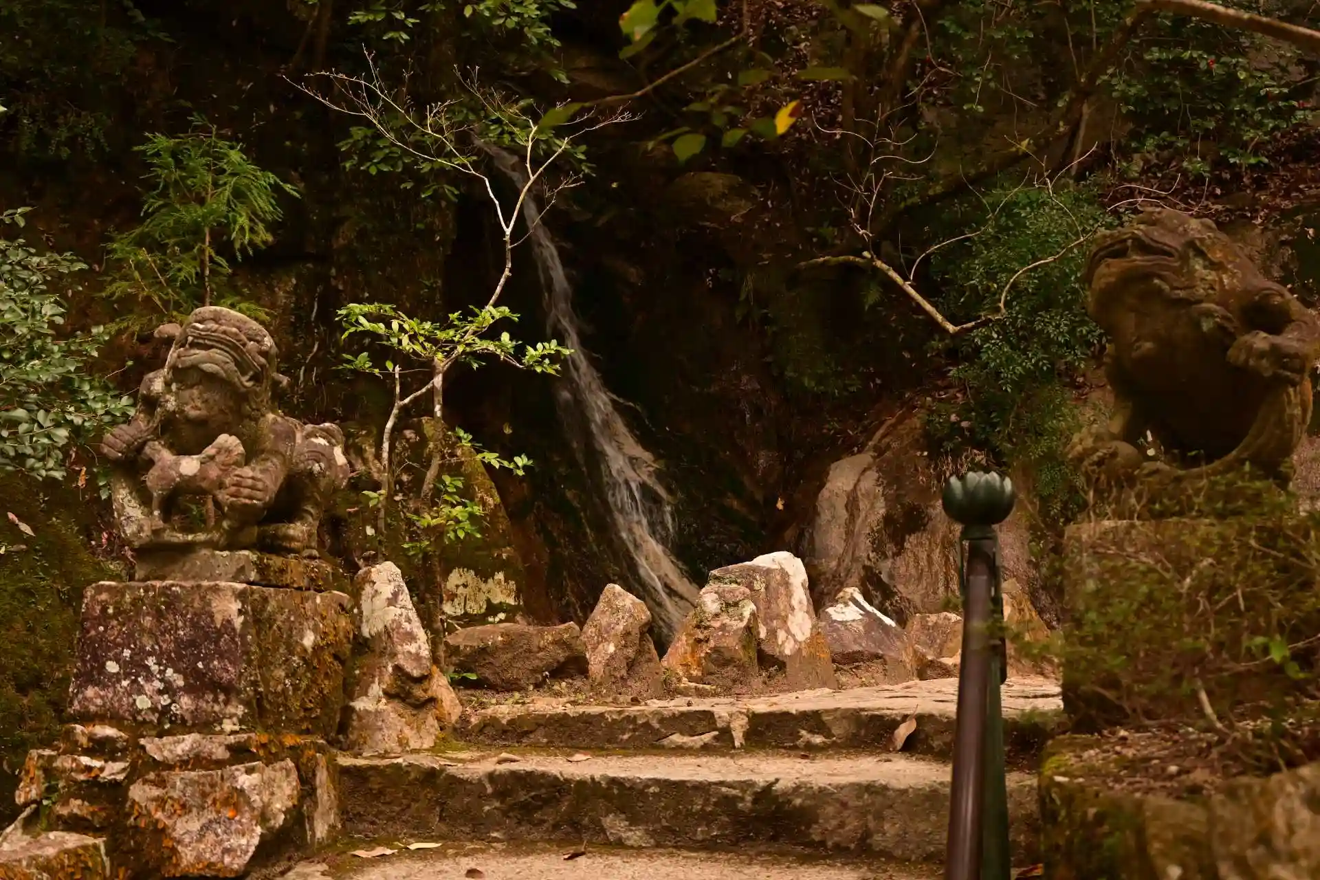 こちらも、阿形? 背後に、幽明の滝。