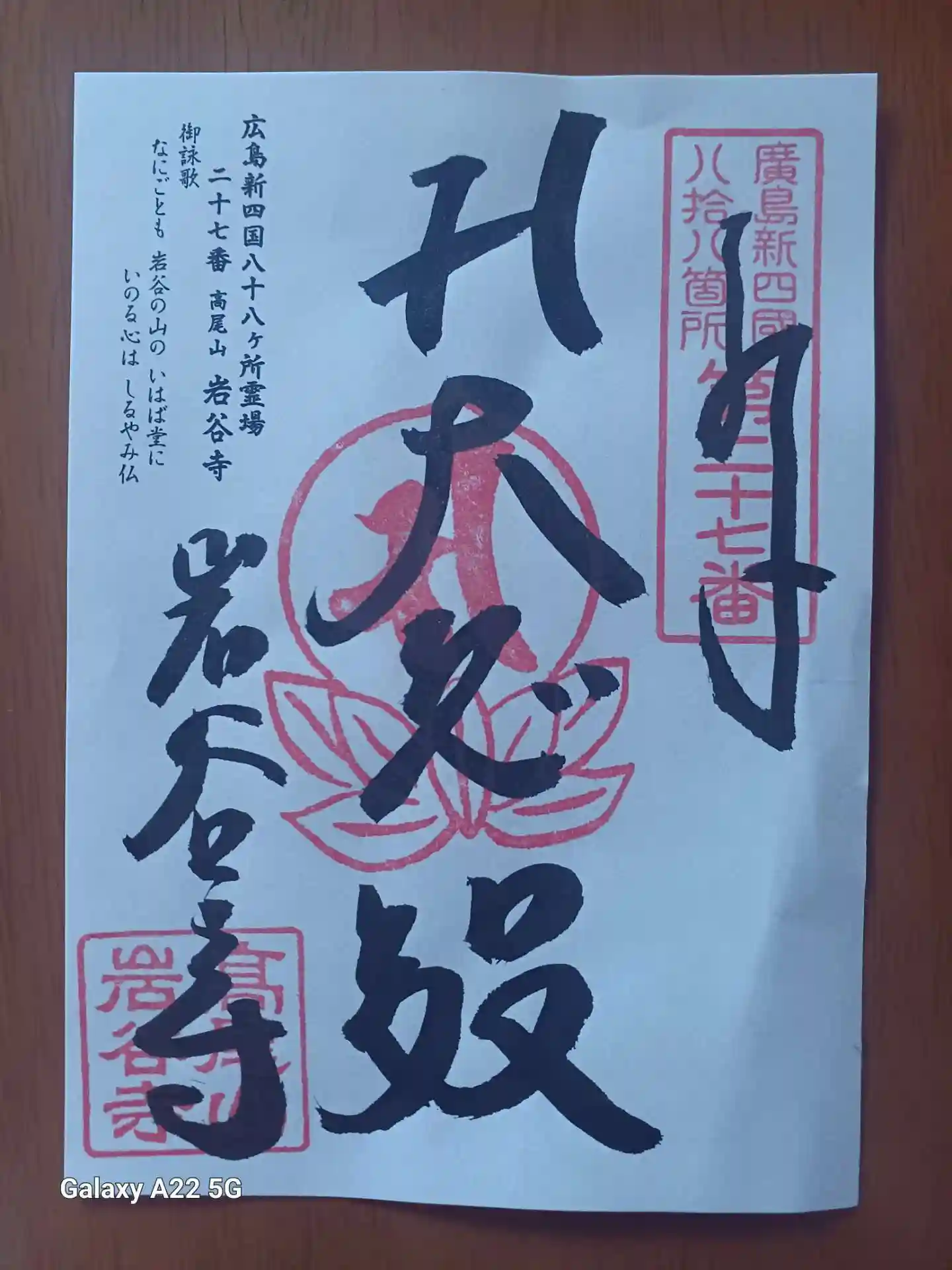 広島新四国八十八ヶ所霊場第二十七番「高尾山 岩谷寺」へお参り。御朱印は、第三十一番金剛寺でいただけます。