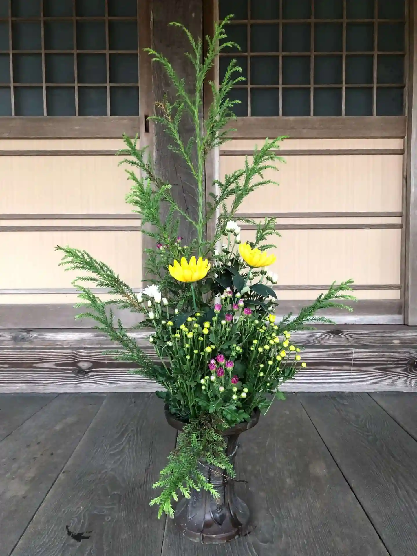 当寺院では、松や杉を活け花の真として据えることが多いです。