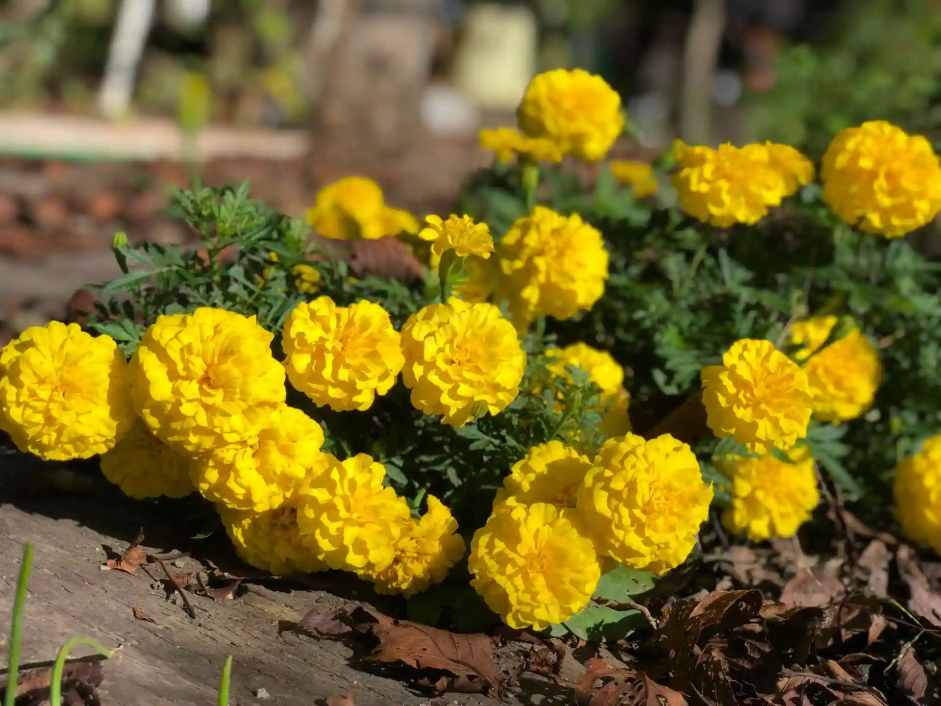 黄色の千寿菊が力強く咲いている様をみると、健康という花言葉に妙に納得できます。