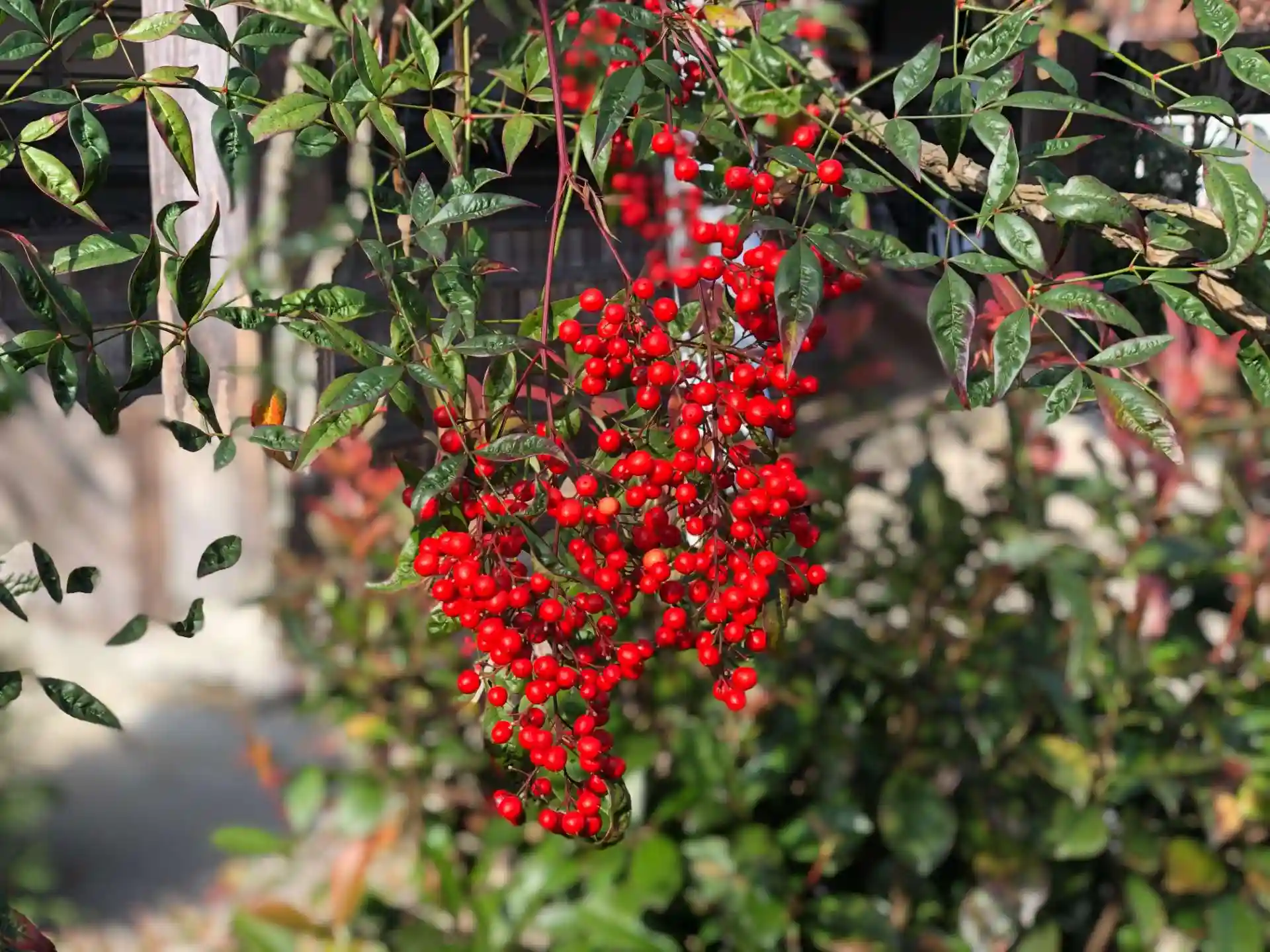 11月上旬くらいから赤い実をつけ始めた南天ですが、今はその頃よりもさらに実が赤く大きくなっています。