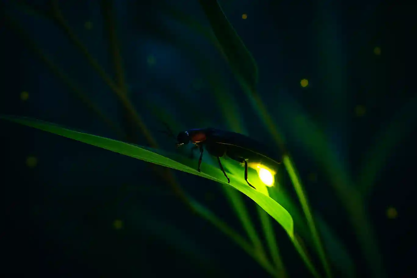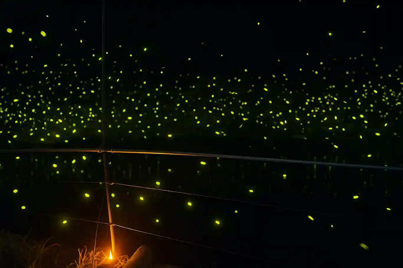 蛍のひとつひとつの光は、まるで夜空に瞬く星のようでした。