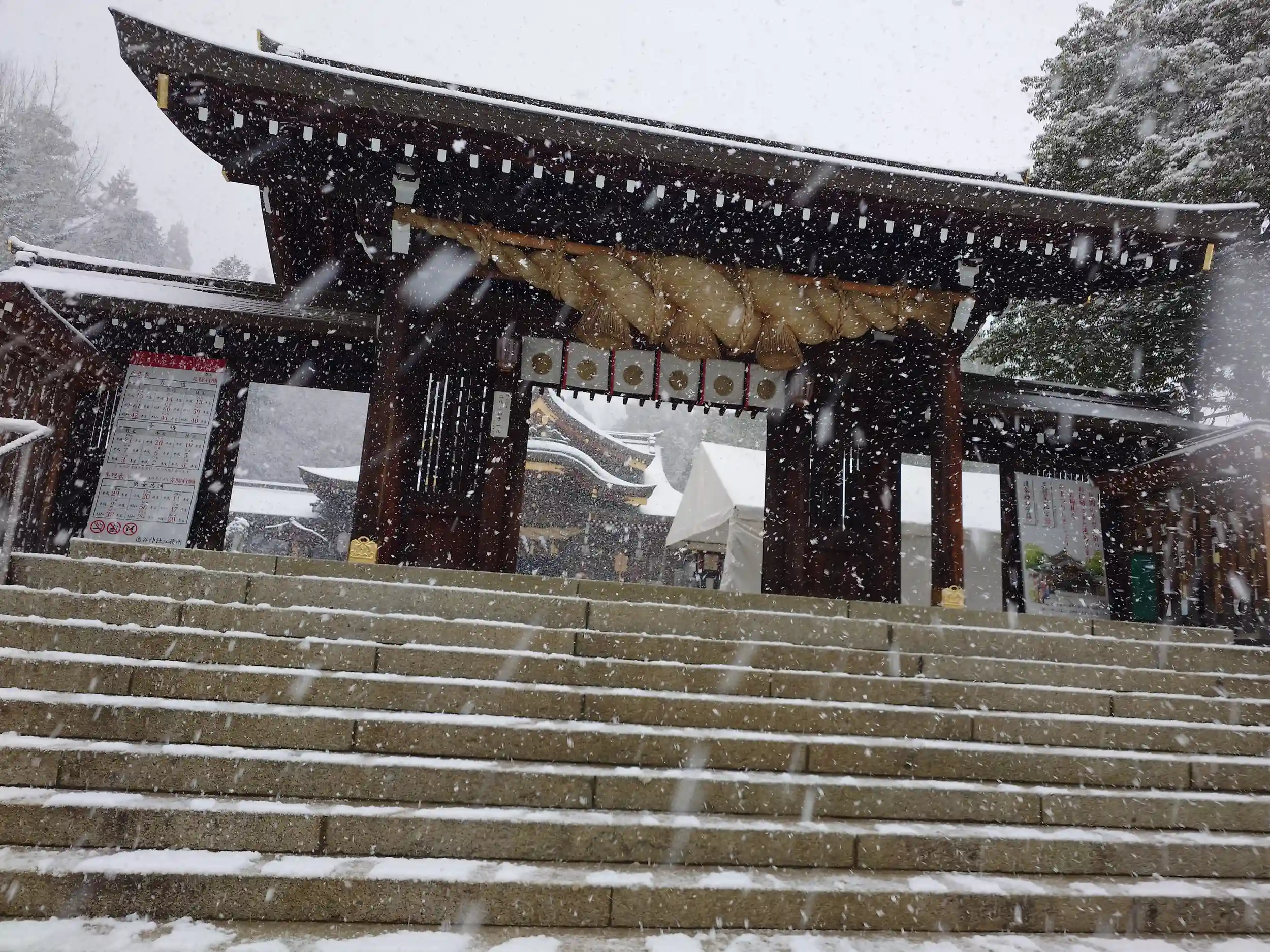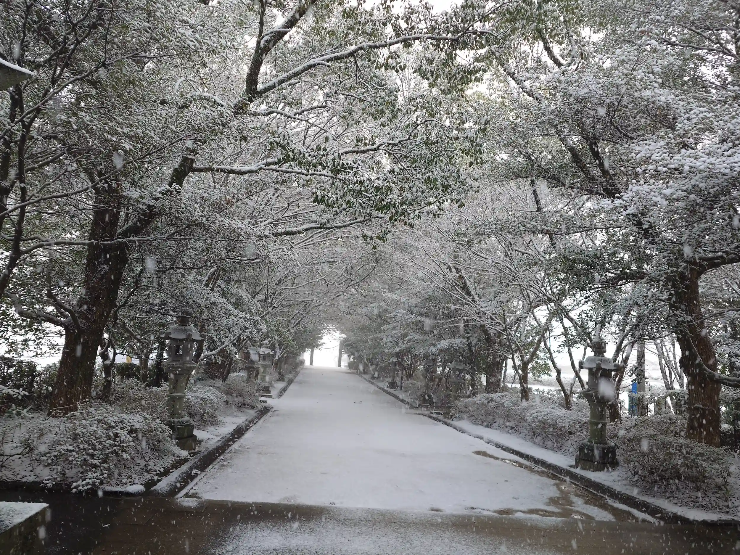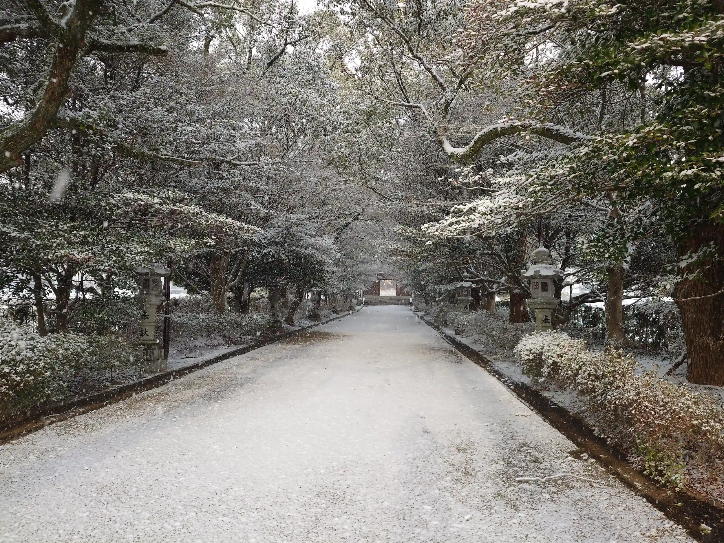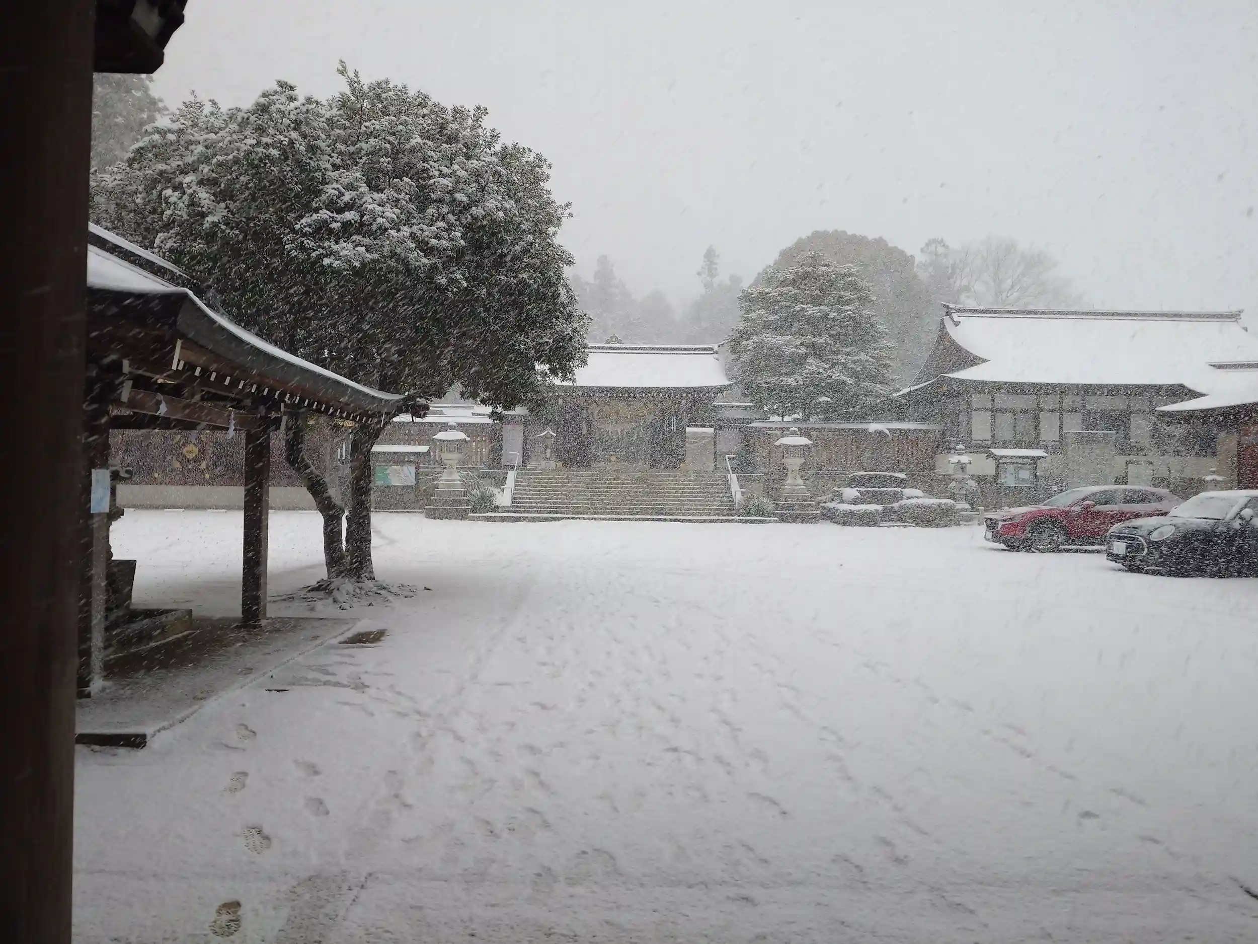 到着時最低でも5cmは積もっていました。人も少なくゆっくり参拝させていただきました。