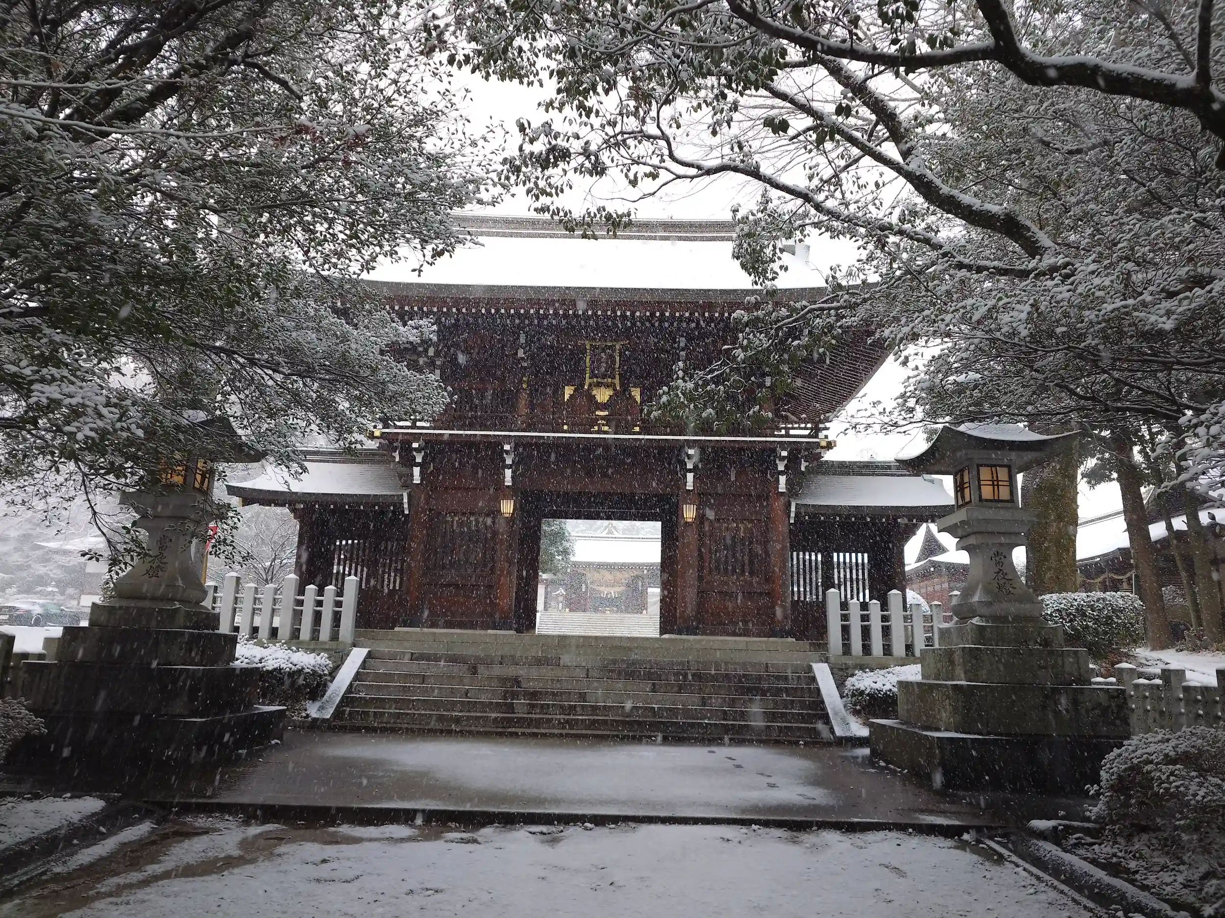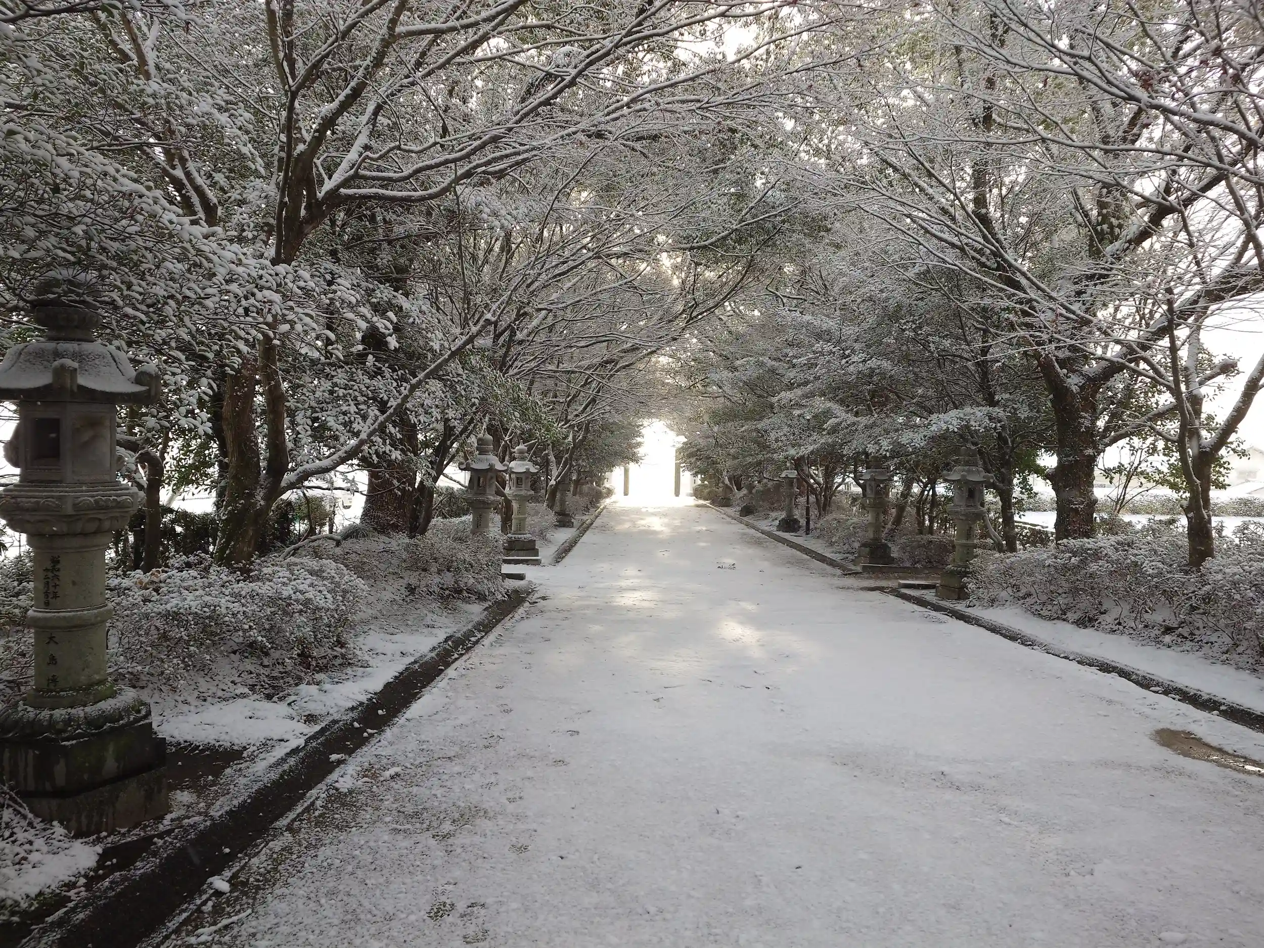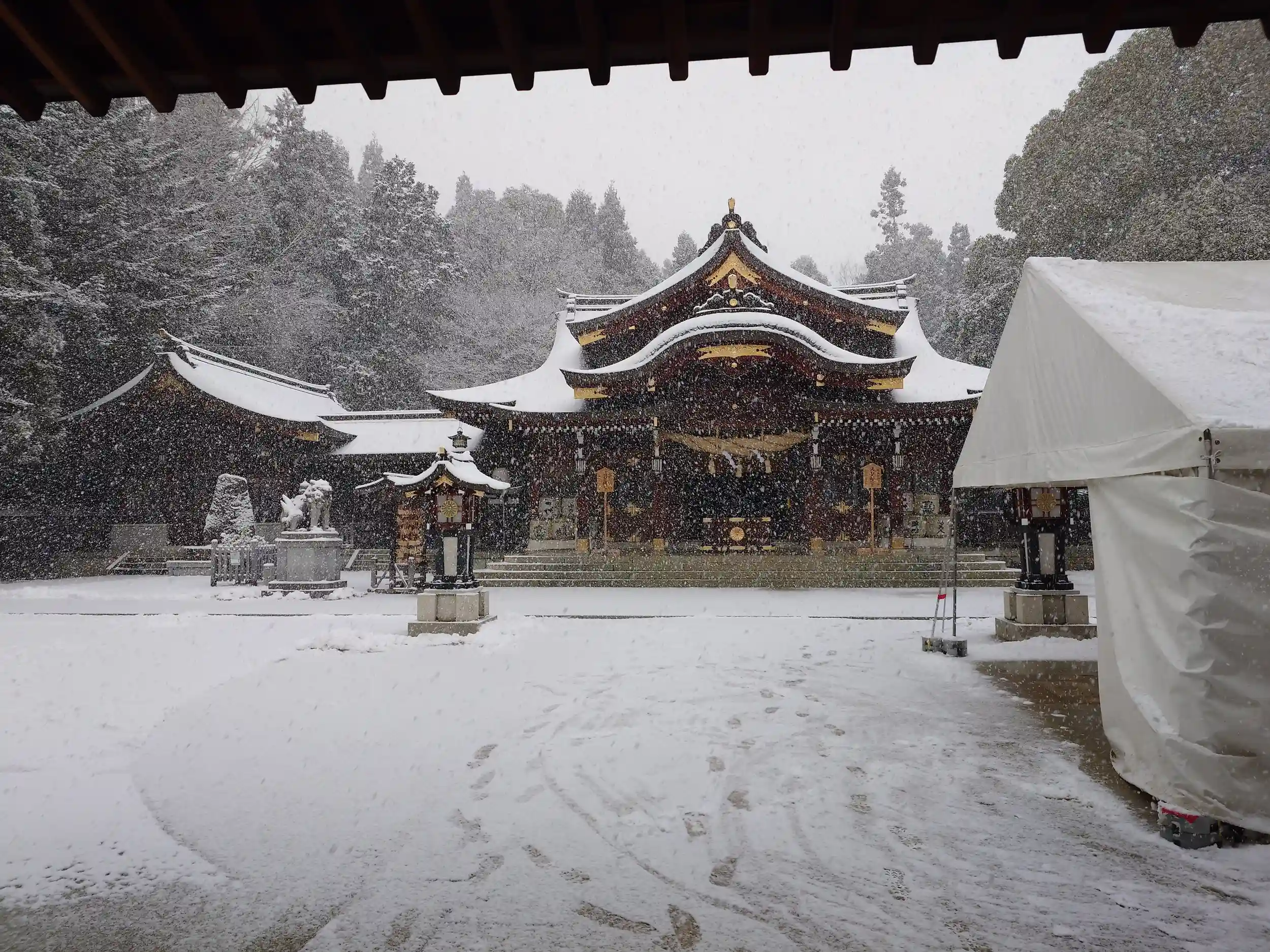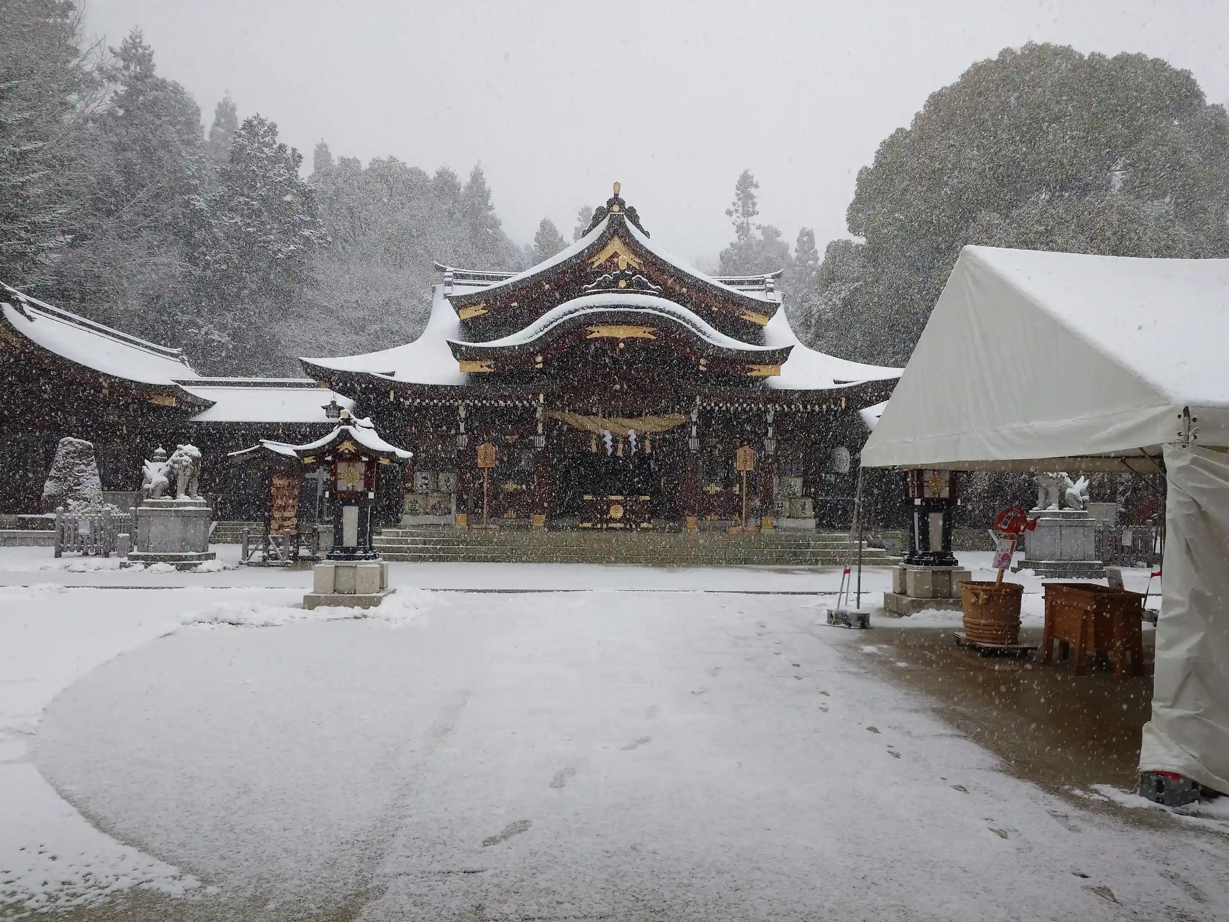 到着時最低でも5cmは積もっていました。人も少なくゆっくり参拝させていただきました。