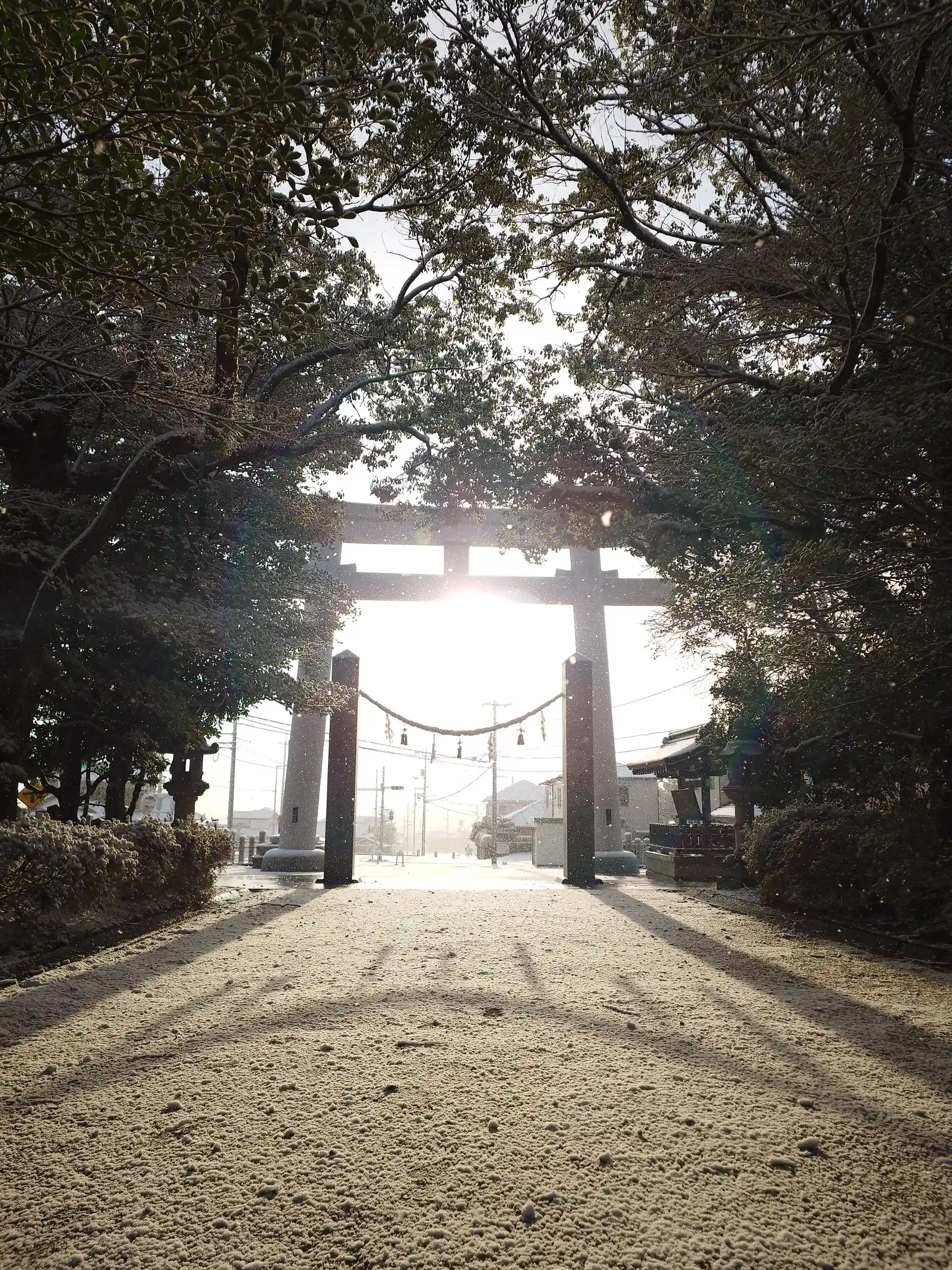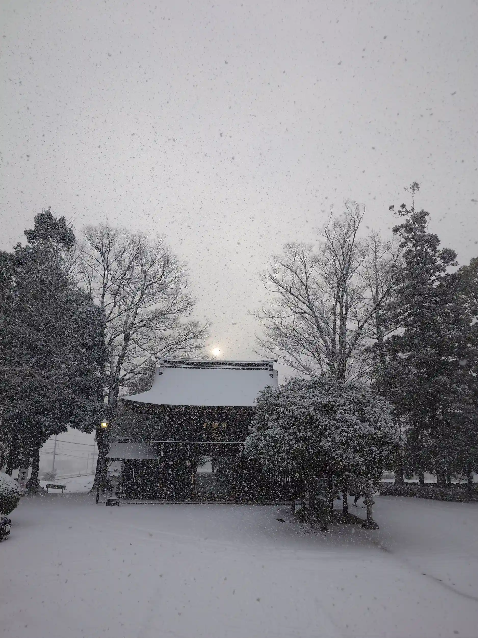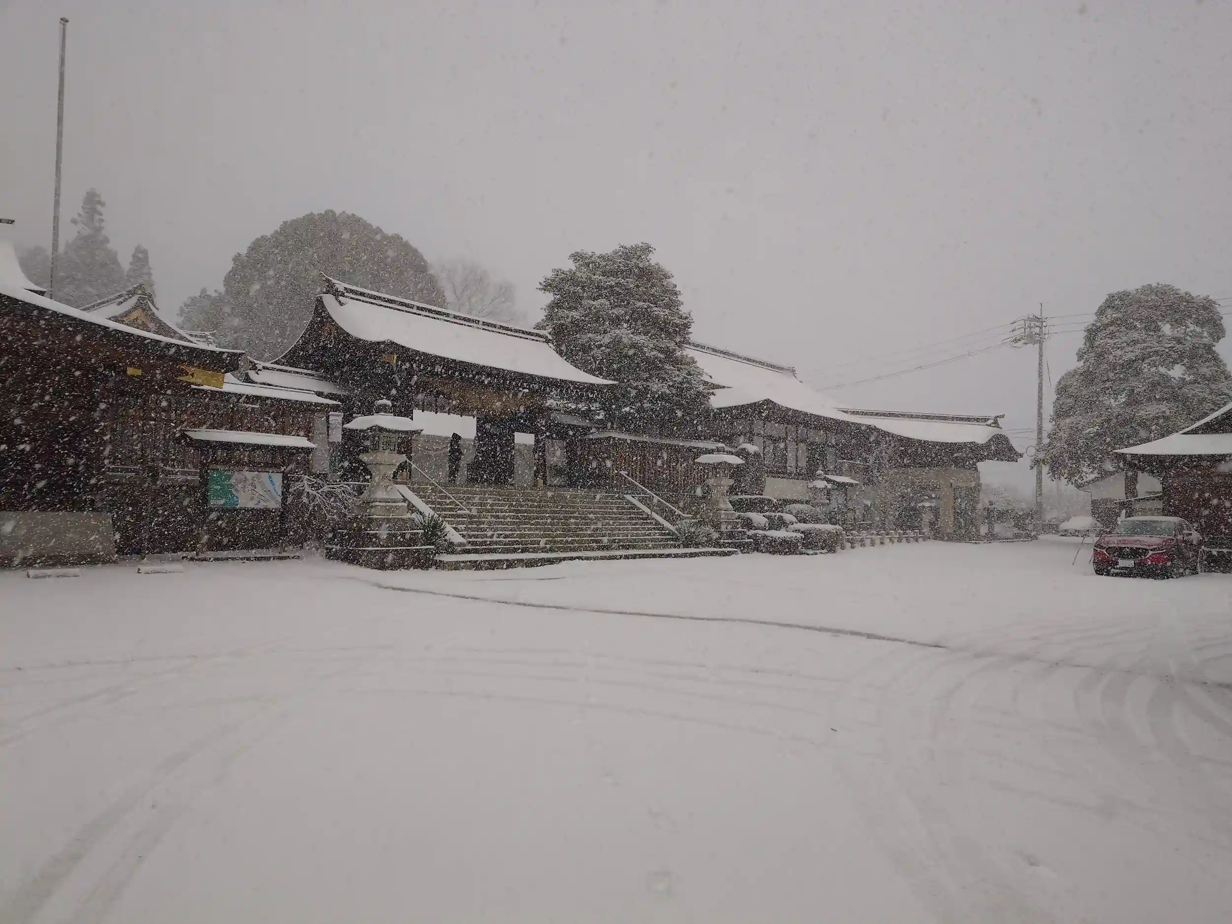 無事ワークマンにて商品を購入して帰宅する道中、どんどこ雪が振り積もり始めましたので、給油帰りに参拝させていただきました。