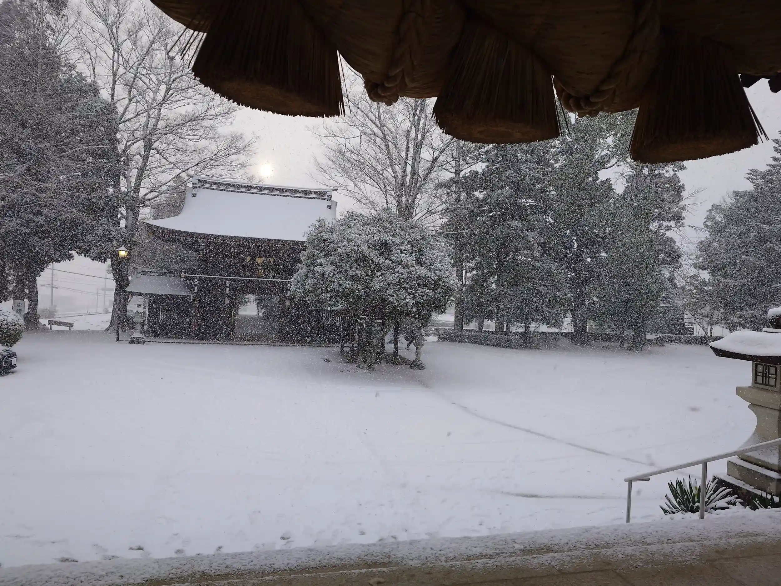 まるで北海道かと思わせる雪景色の境内 ほんと素敵です。