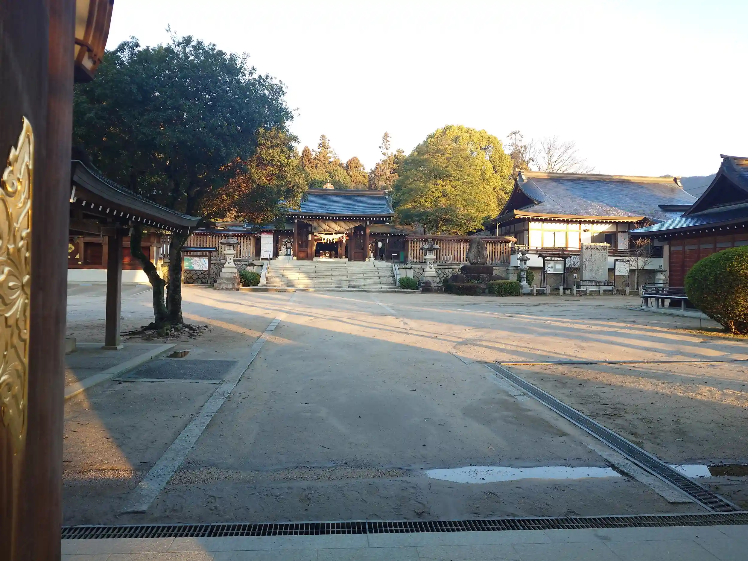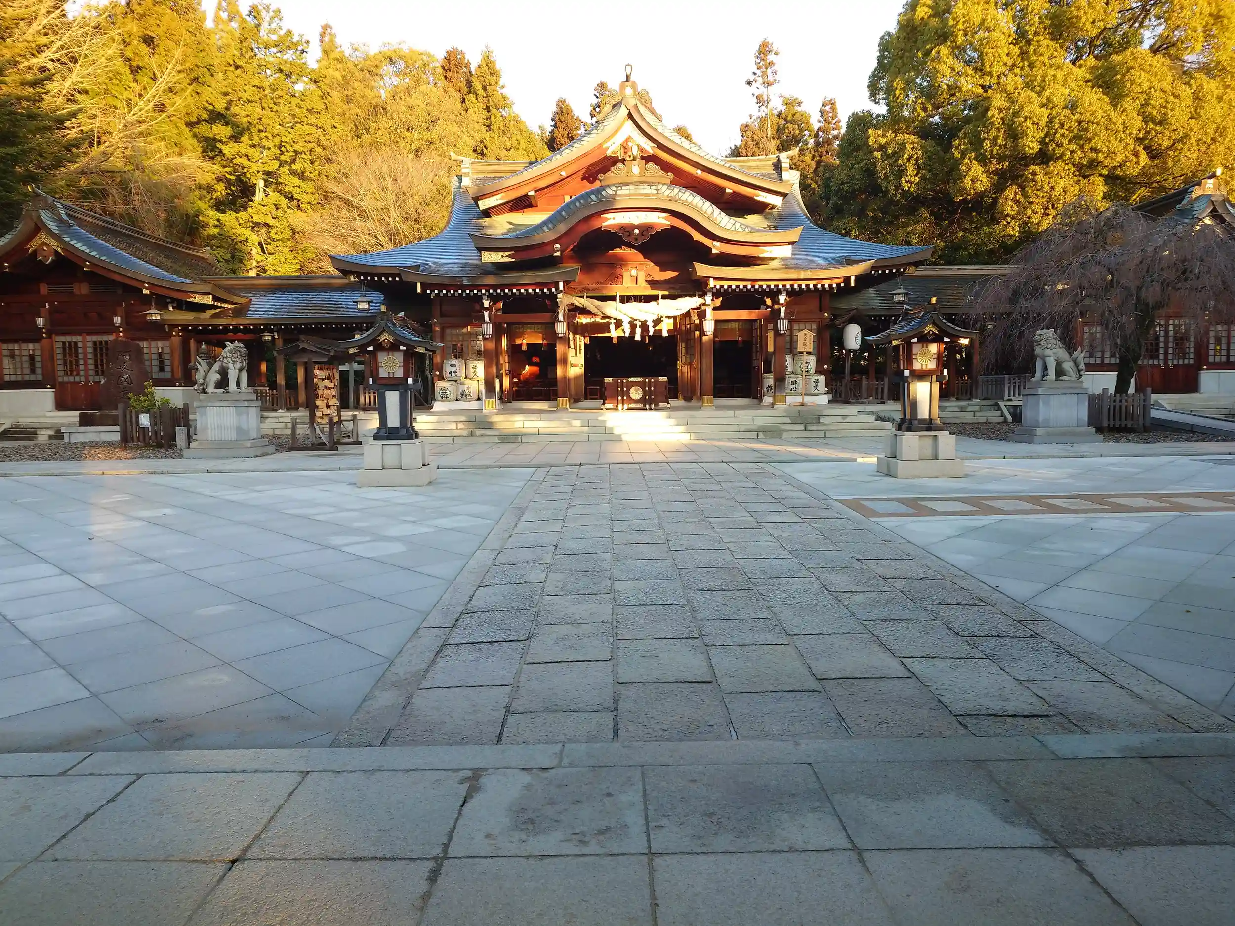 拝殿御本殿です。朝日に照らされて神々しいですね(^^)