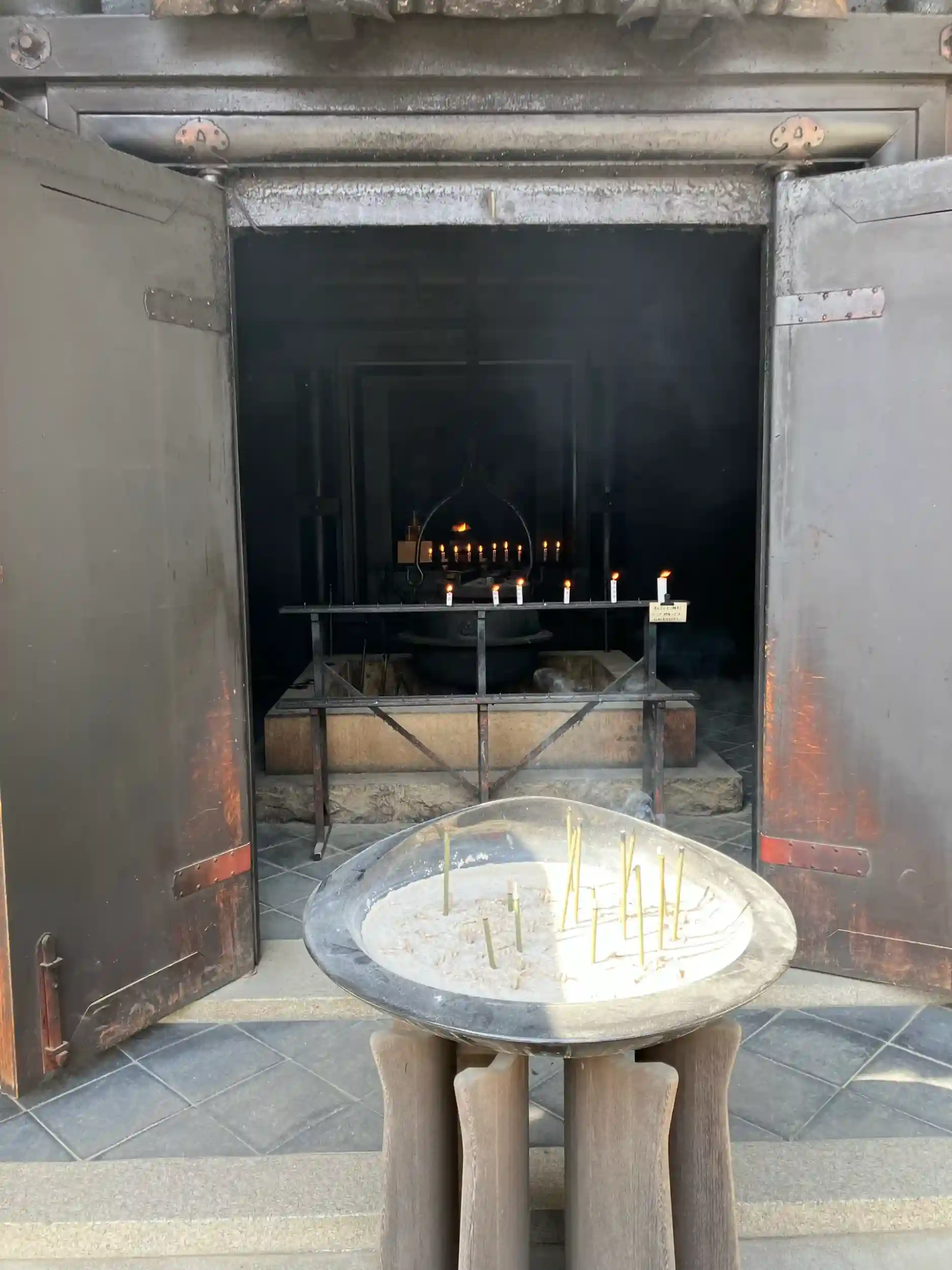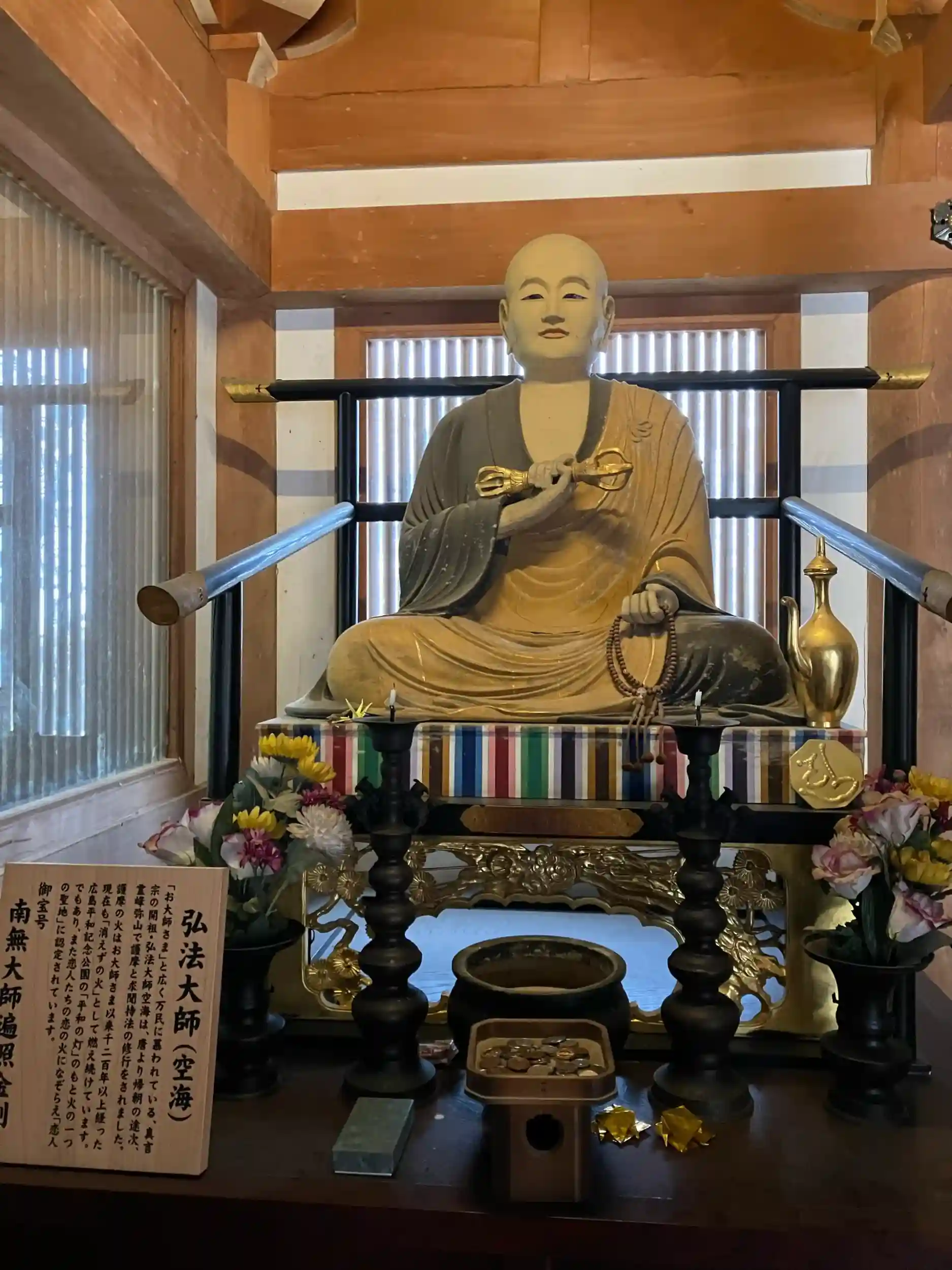 弥山の中腹にあります。弥山には七不思議というものがあるらしく、そのうちの一つの消えずの火を見ました。消えずの火と思わせるように、お堂が真っ黒でした!霊水も頂きました🙏
