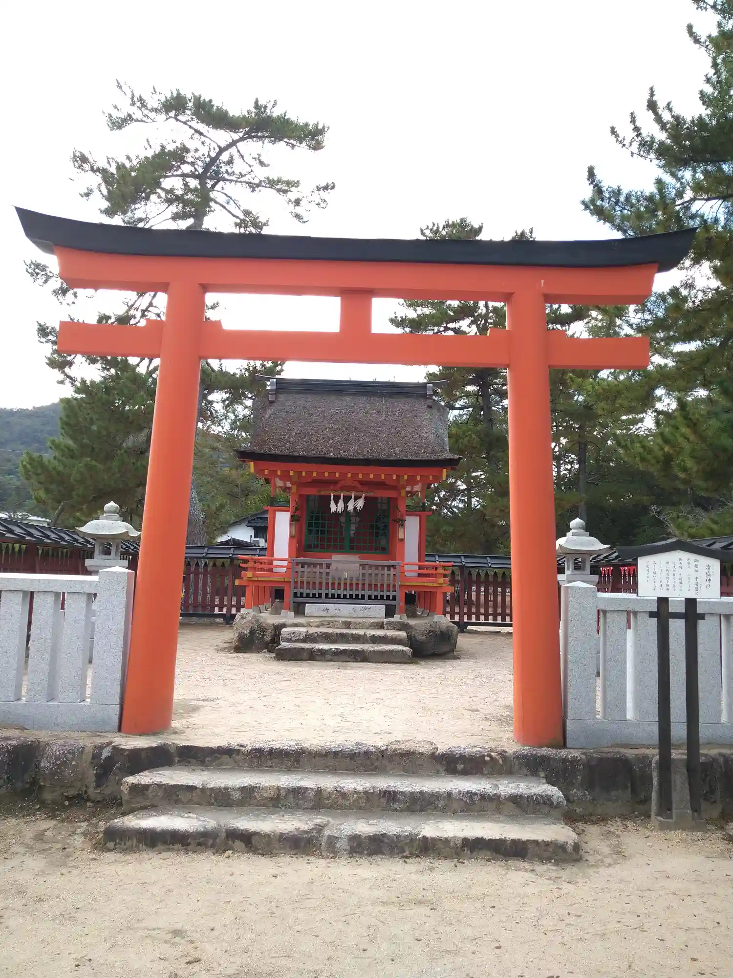 厳島神社の参拝出口を抜け、浜沿いの道を5分程歩いた先に鎮座するのが清盛神社。