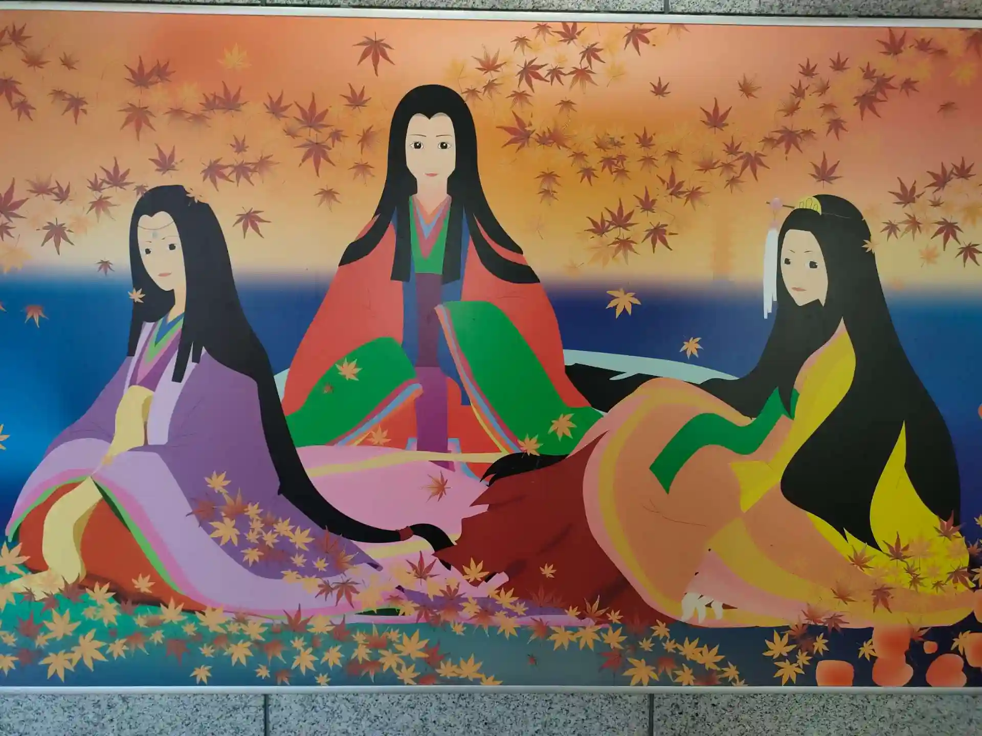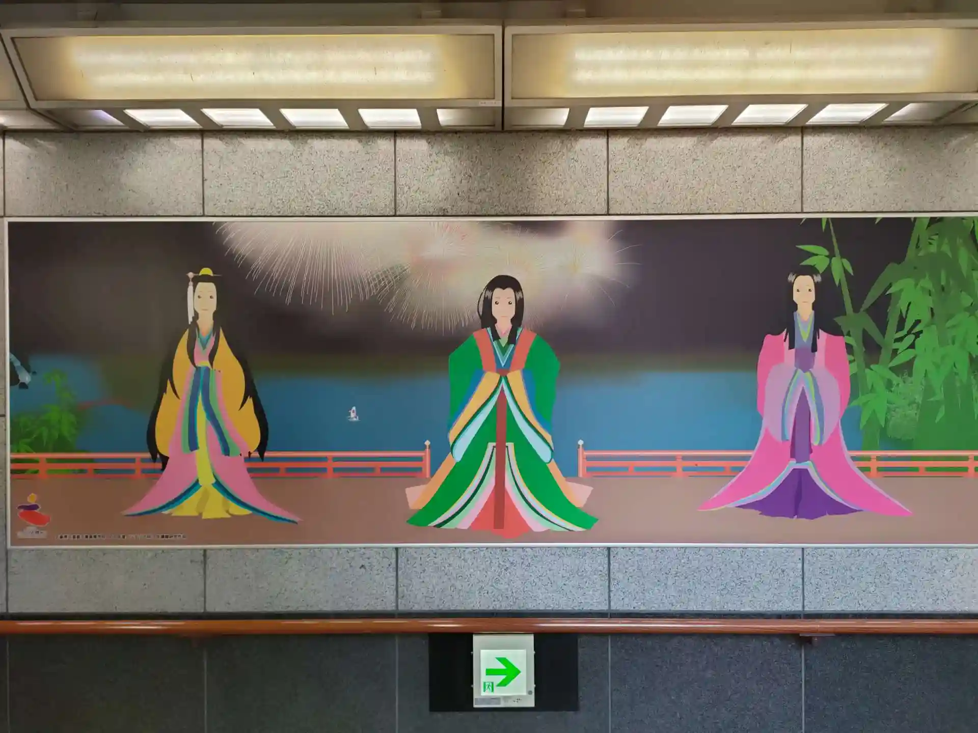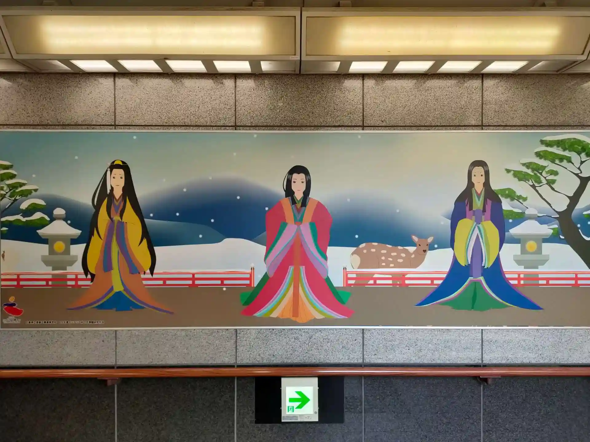 宮島口の地下道には厳島神社に祀られている三女神のイラストがあります。