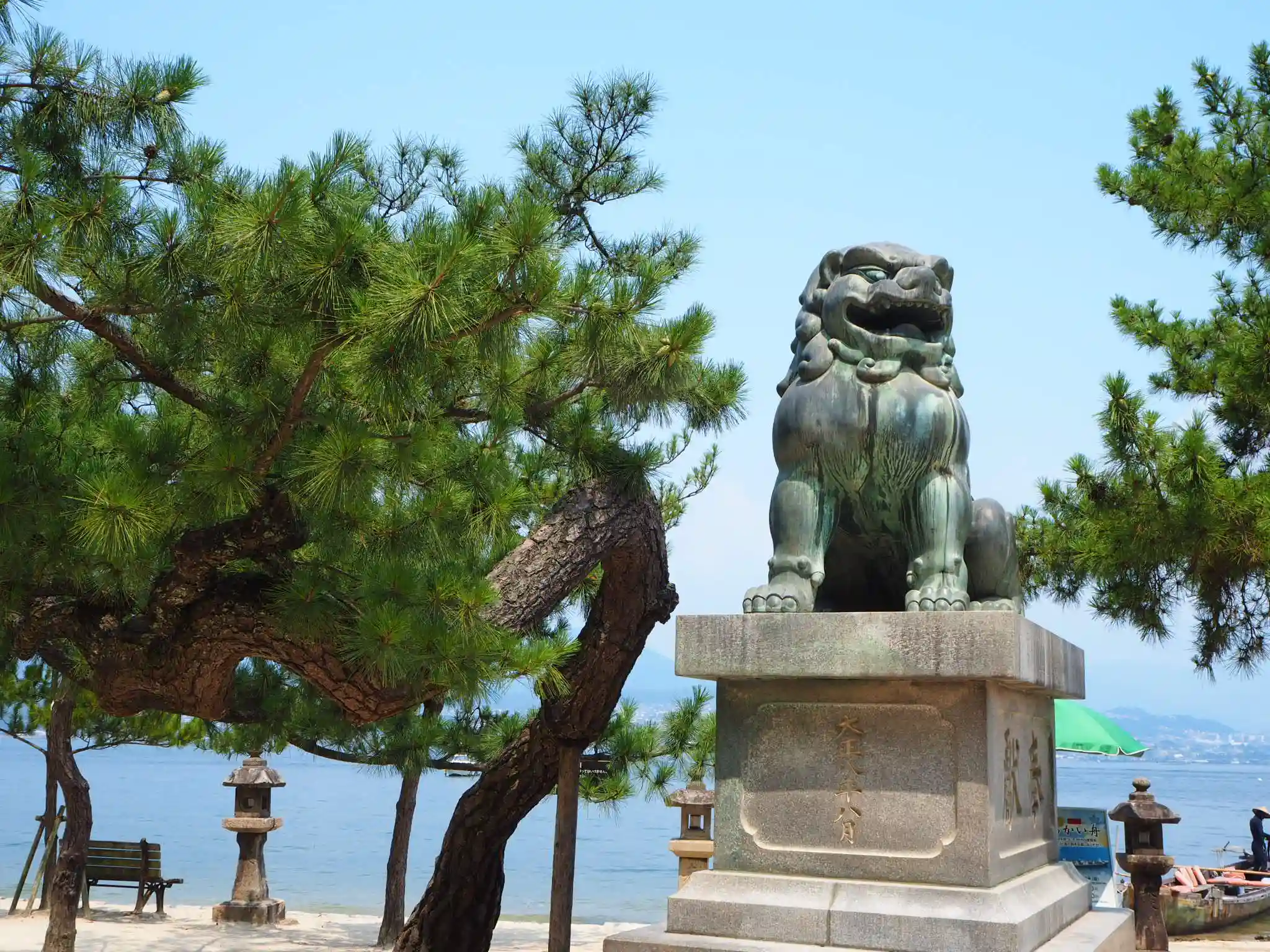 海に浮かぶ鳥居は改修工事中でしたが存在感は凄まじです。