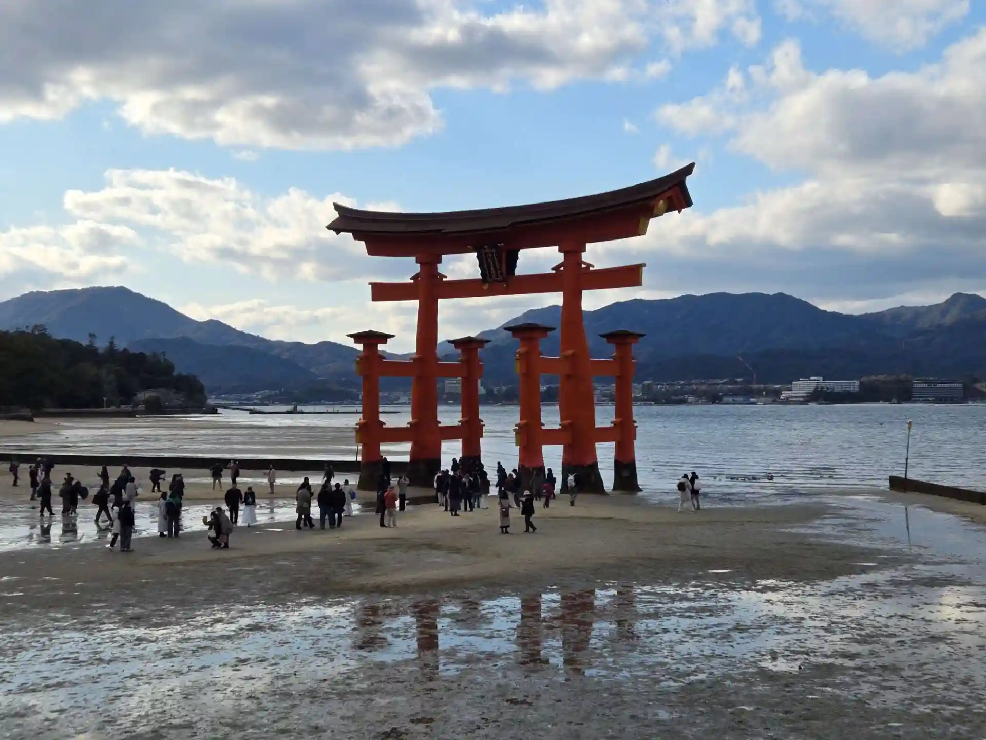 ちょうど引き潮の時間帯で、大鳥居の足元まで見えました。