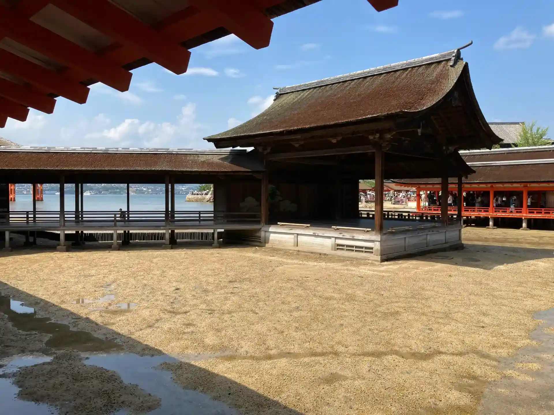 また、能楽屋とその舞台もありました。廻廊の辺りは干潟になっており、たくさんのカニがいました。
