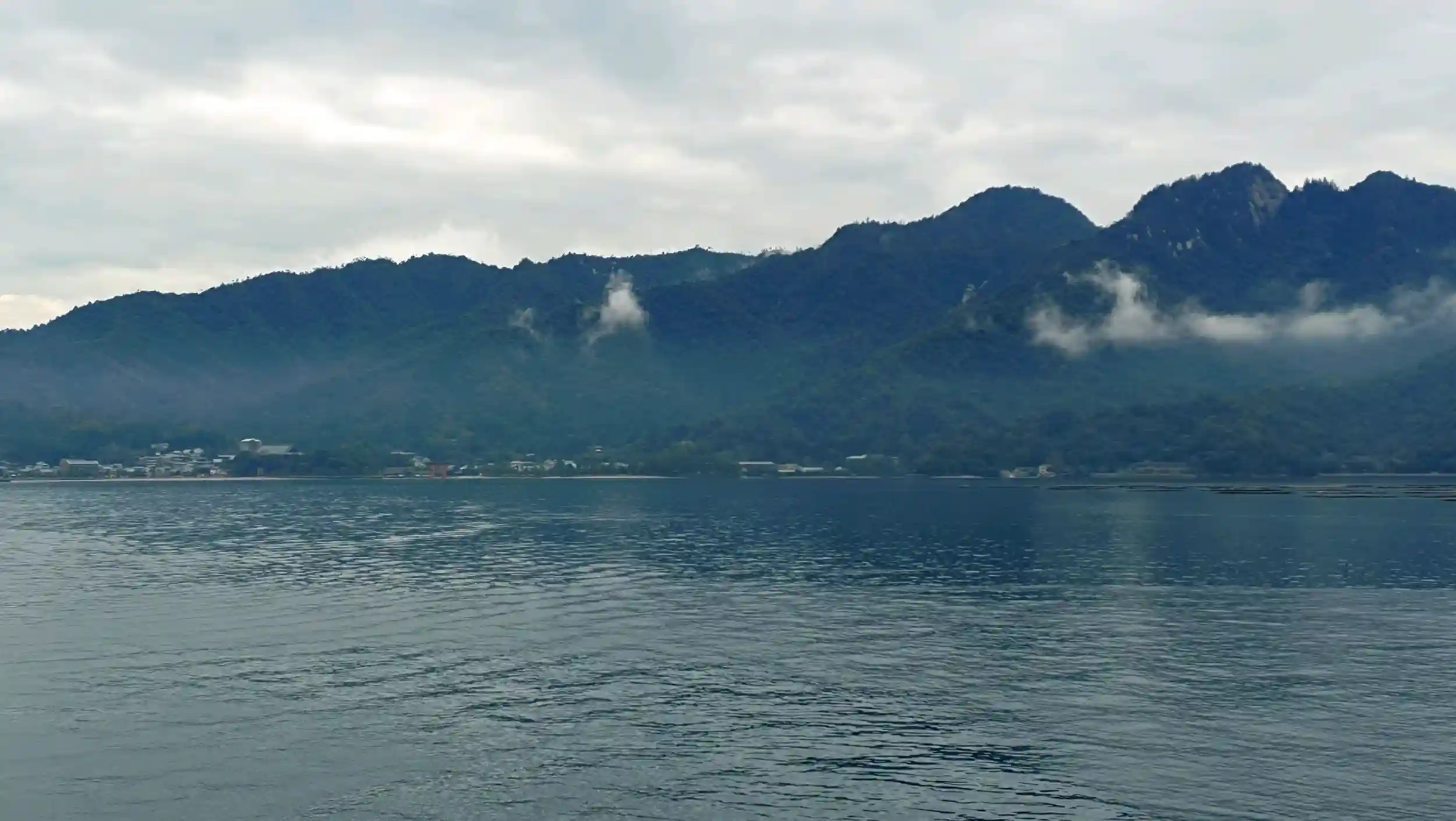 靄がかかる小雨の中出航。
