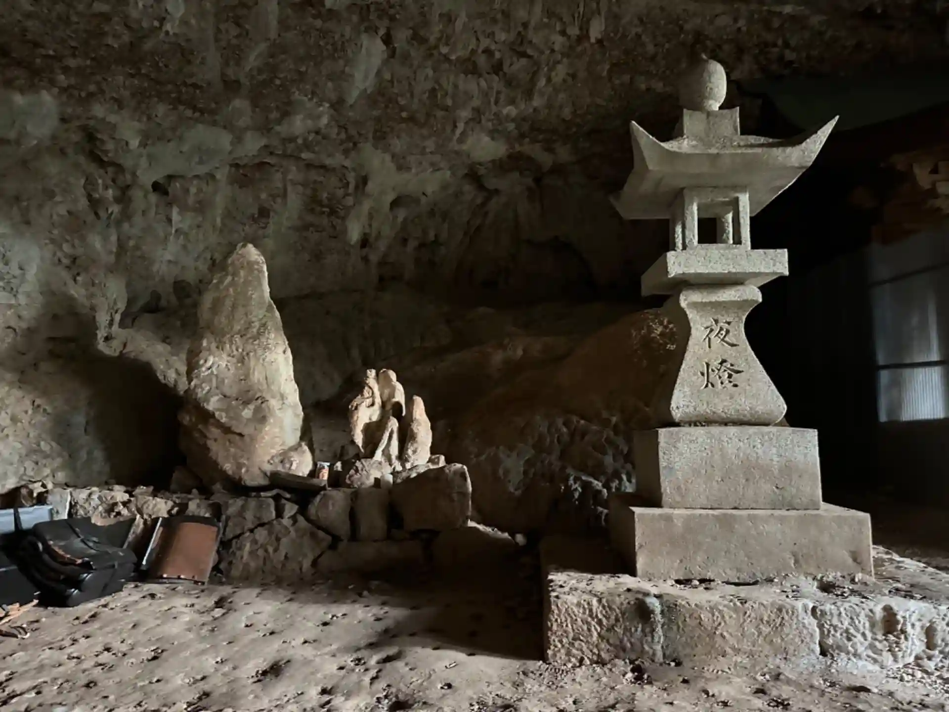 なんと社殿は大きな岩壁の隙間にありました。この岩石自体が山全体の隙間のようなものなので動いたりすることはないと思いますが、開けたところでもなくこうした隙間を祭祀場とするとは…。山頂ではないのもまた興味深い。原始信仰体系の一つですね。