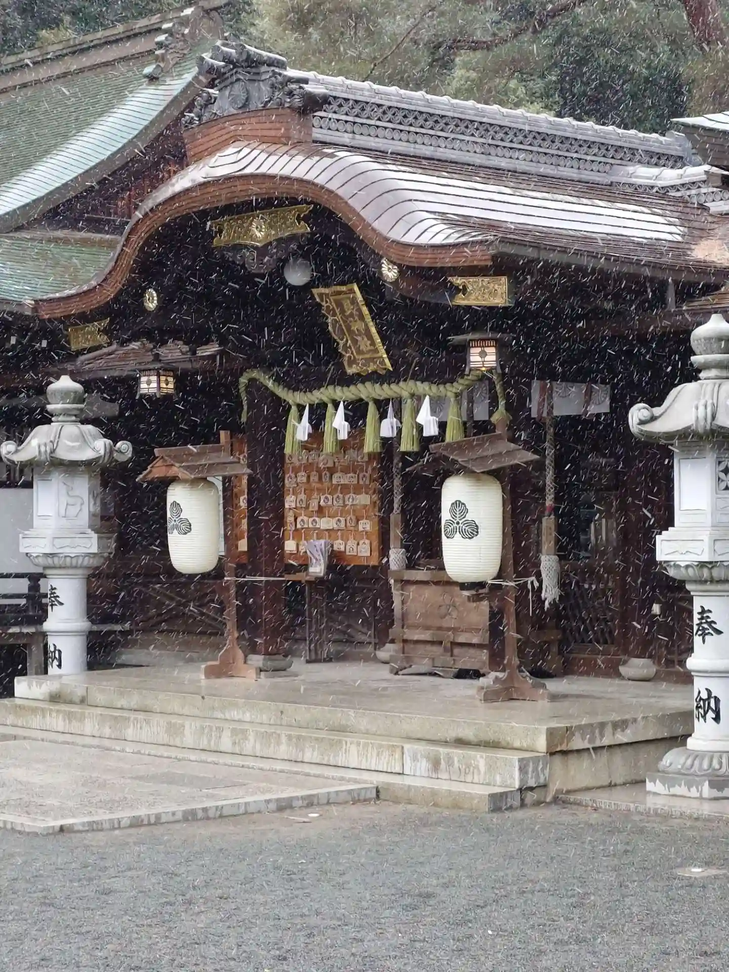 雪の舞う中の参拝でした。