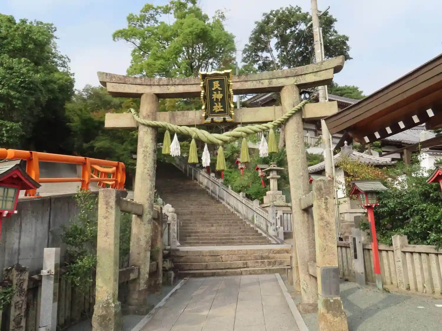 鳥居をくぐってから、境内までの階段のもみじが、紅葉が始まったらさぞ綺麗だろうなと思いました。