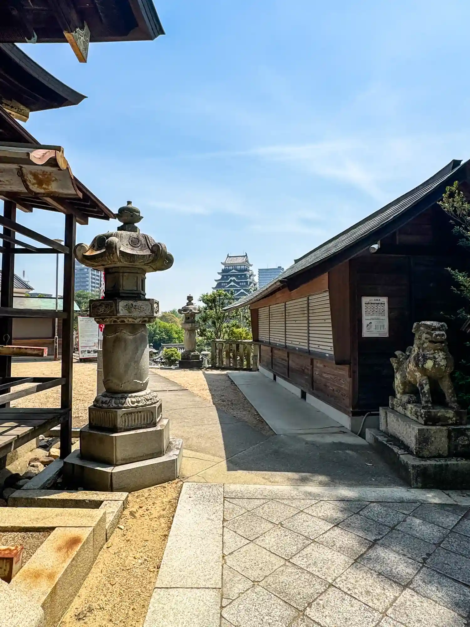 福山城周辺七社巡りで、参拝しました 境内から福山城が見えます、御朱印頂きました。