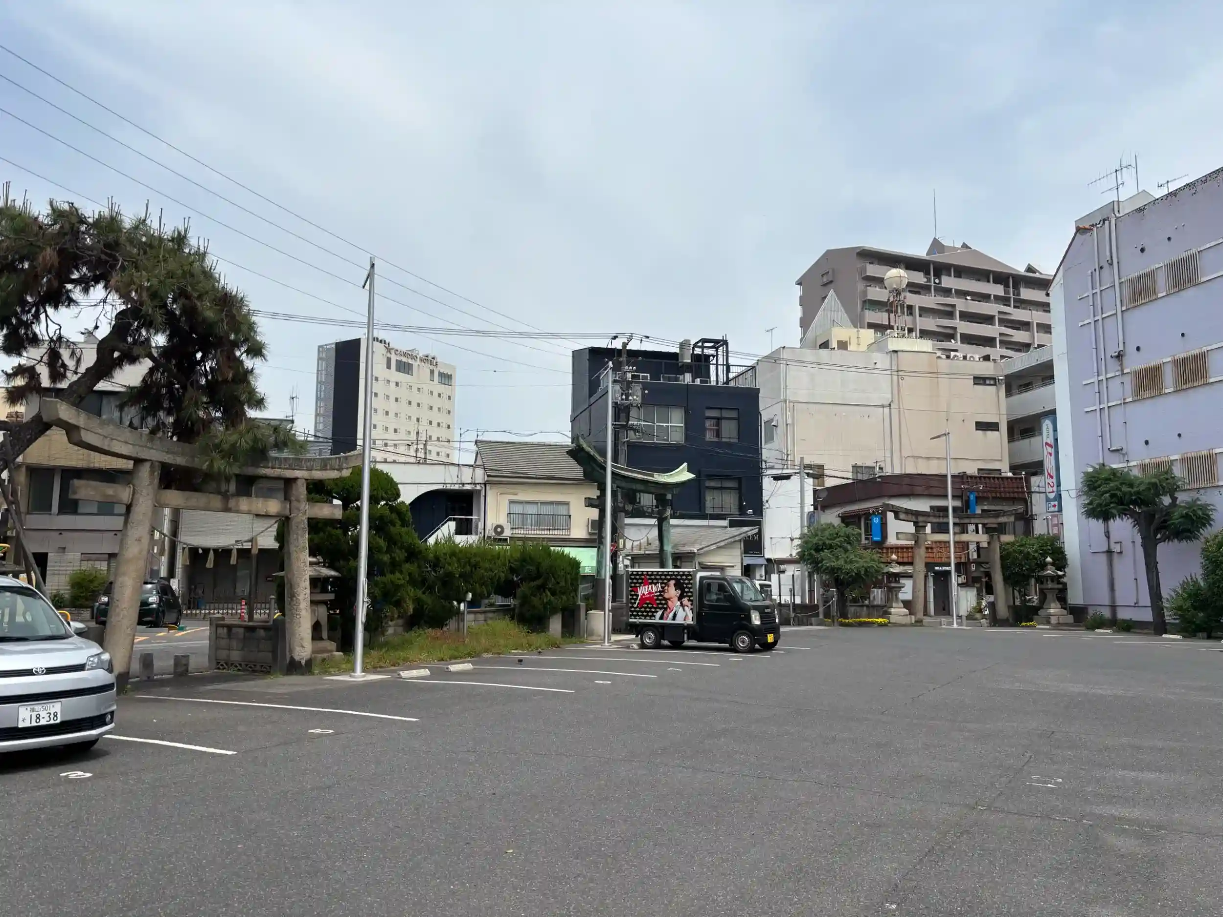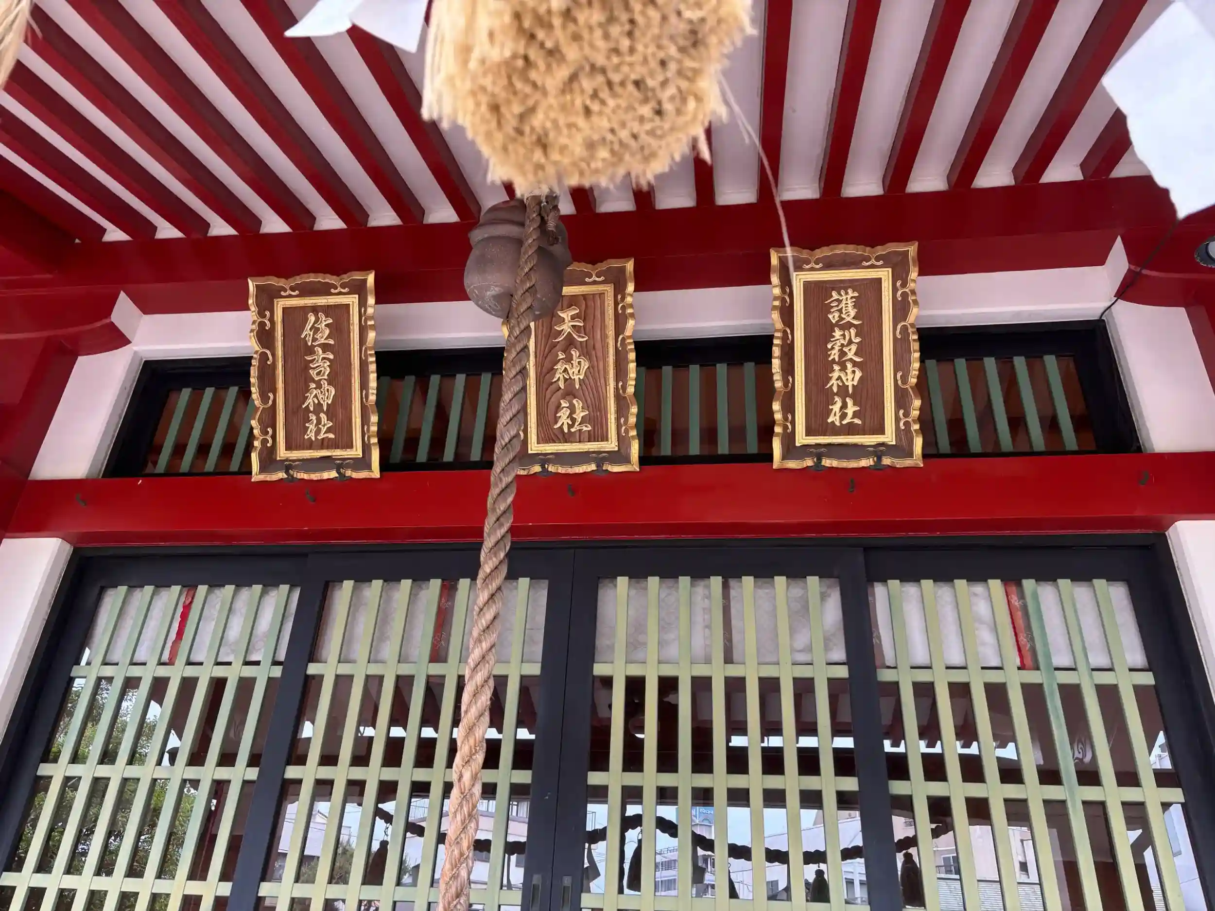 正式には護穀神社、天神社、住吉神社の三社が祀られています。扁額も三社分。鳥居も三社分。近くにあるのは飲み屋街と大人ホテル、さらに病院という立地で、境内の半分が月極駐車場というなかなかな感じですが、しっかり歴史があるようです。ネットで調べると懐かしのmixiに検証トピがありました。他のブログによると、かつては海に面していて花火が打ち上げられたり、盛大な祭りが開催されたりしたのだとか。神主不在で町民が伝承してきたこの神社を守ろうと境内でイベントを開催するという記事もありました。