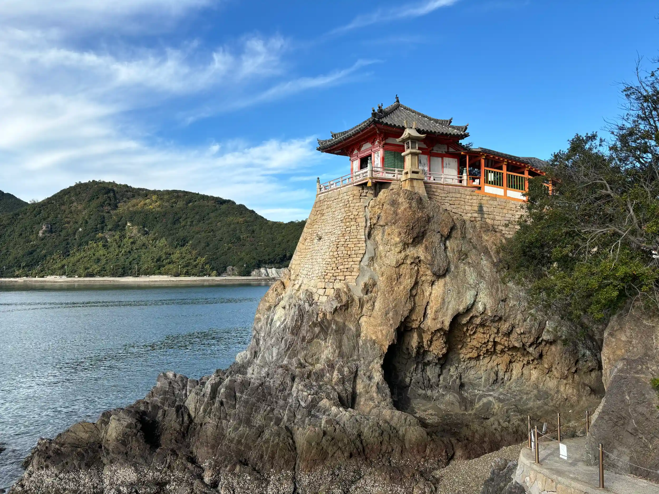 海に映える阿伏兎観音