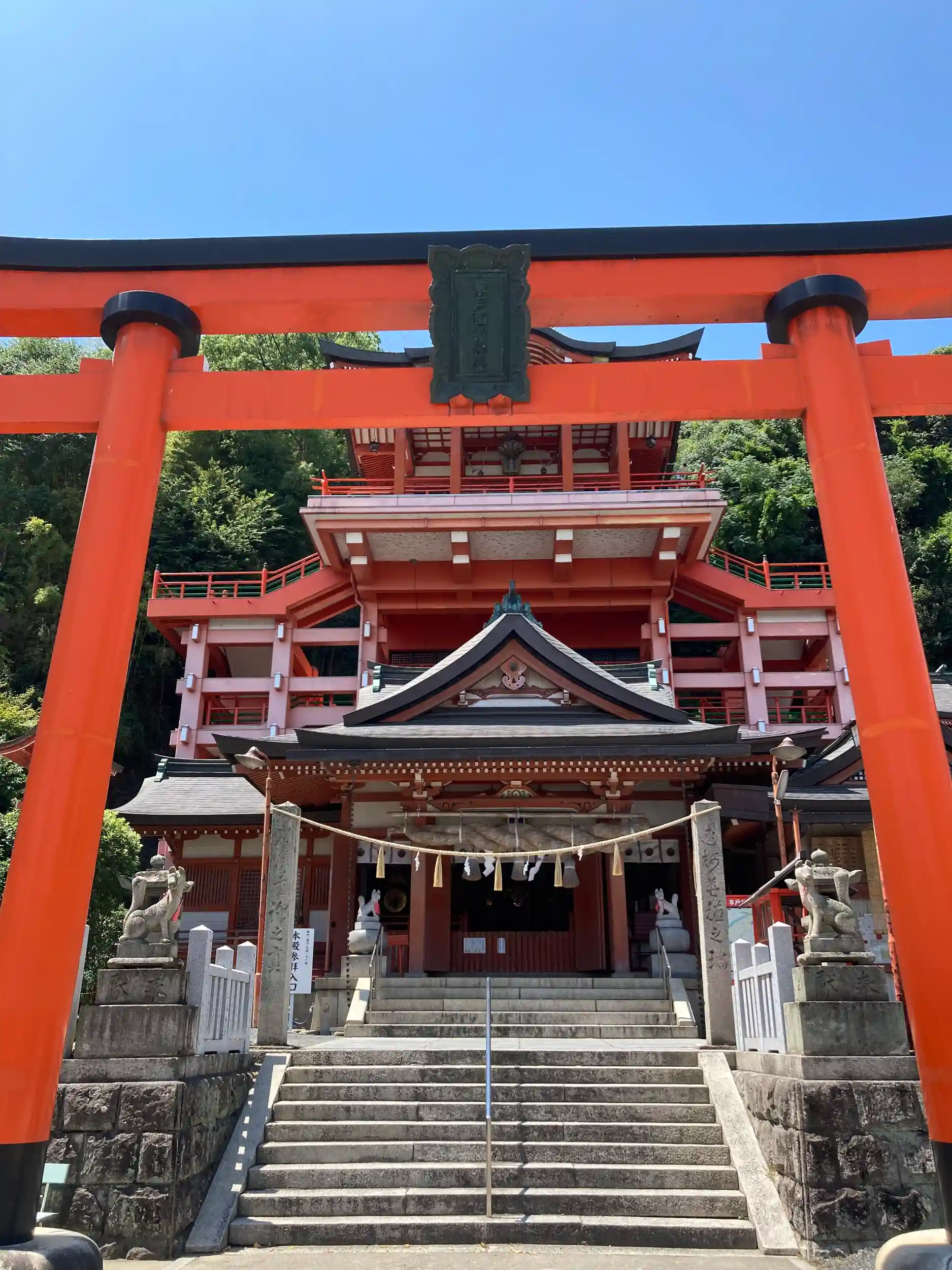 最初に明王院に向かったのですが、遠くからも朱色にそびえ立つ要塞のような建物に向かったところ、明王院ではなくこちらの神社。