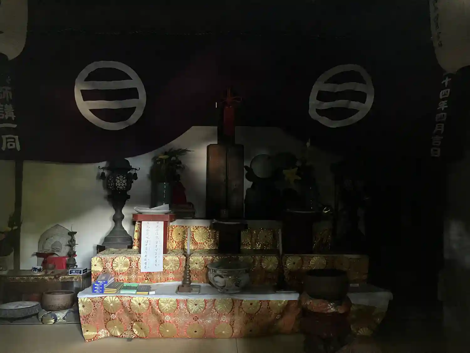 以外なのは須弥壇(しゅみだん)のうしろに、浄土真宗中興の祖 蓮如(れんにょ)によって書かれた「南無阿弥陀仏」という六字名号(ろくじみょうごう)が掲げられていることです。