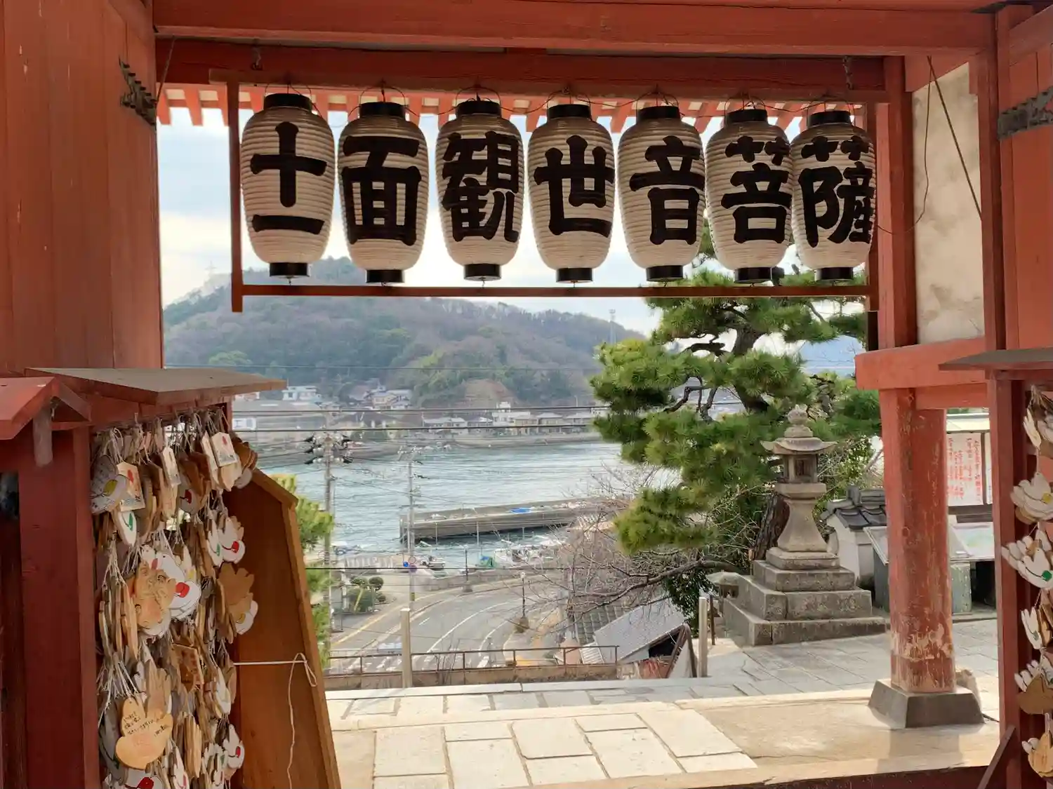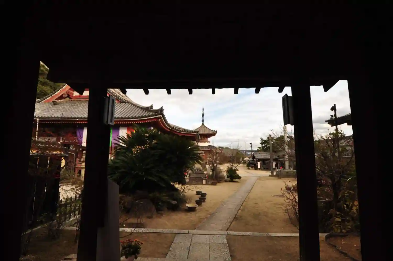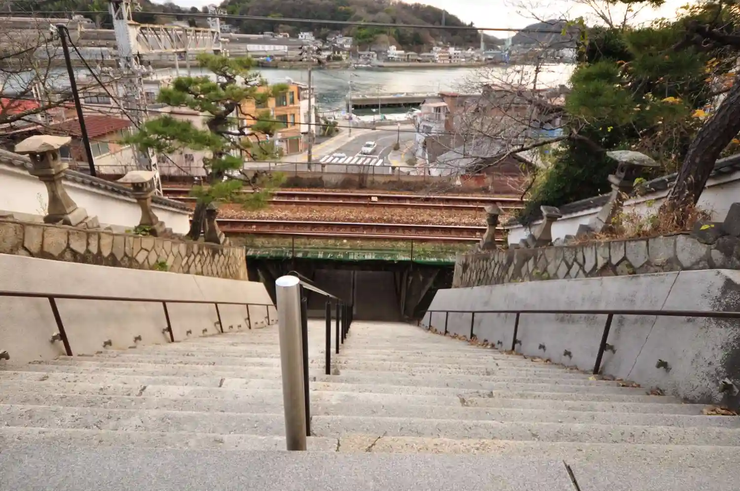 山門から線路をくぐって国道に出るという面白い光景。天気が良いとこの山門から海の眺めが良いみたい(なんで撮ってなかったのかなー過去の俺…)