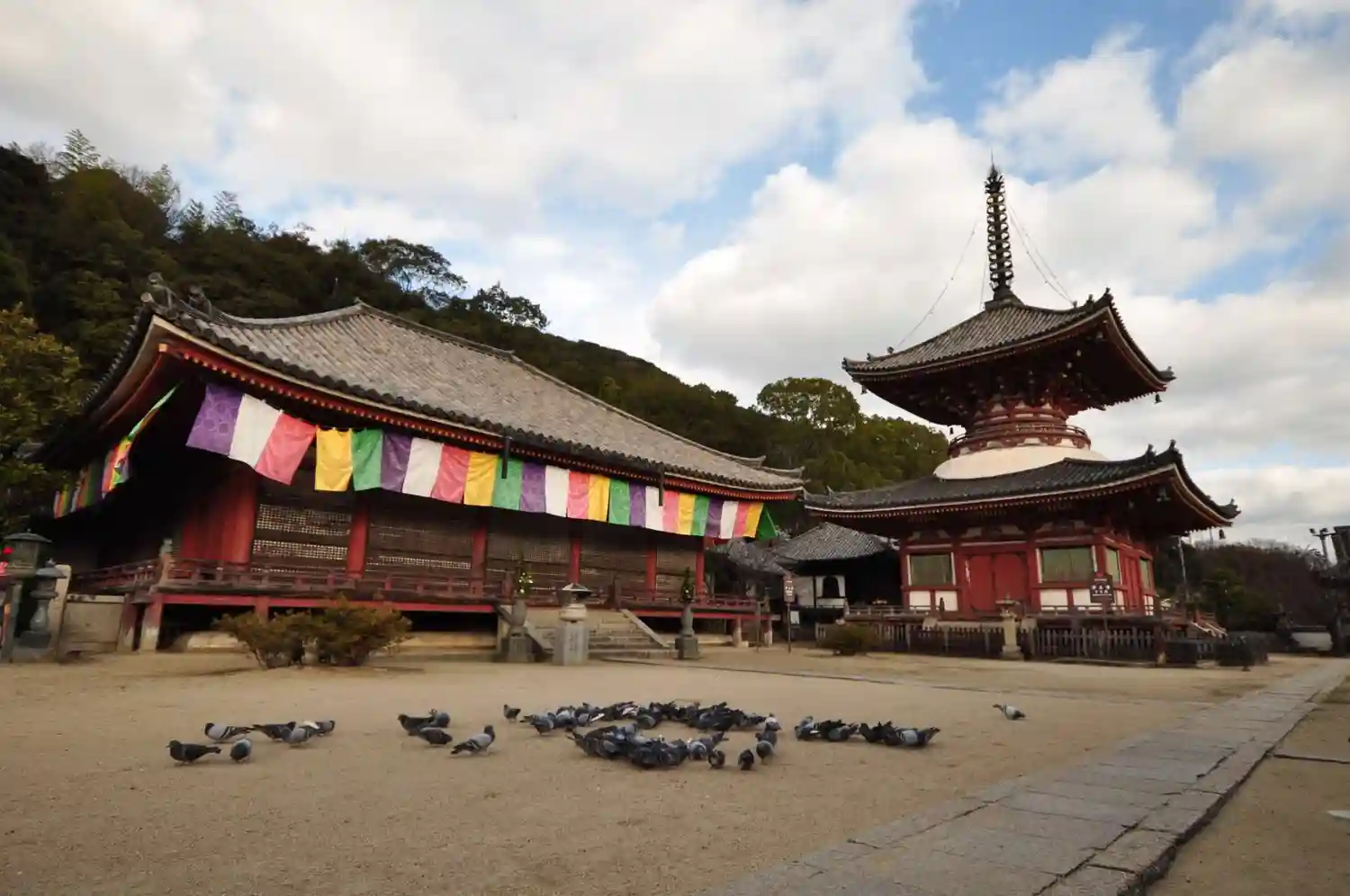 鳩がいっぱいなお寺です。