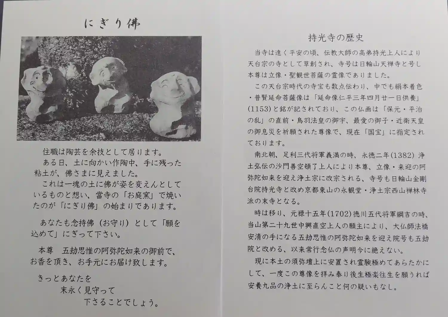 にぎり仏という、自分で土を握って仏像を作る体験ができるのですが、…
