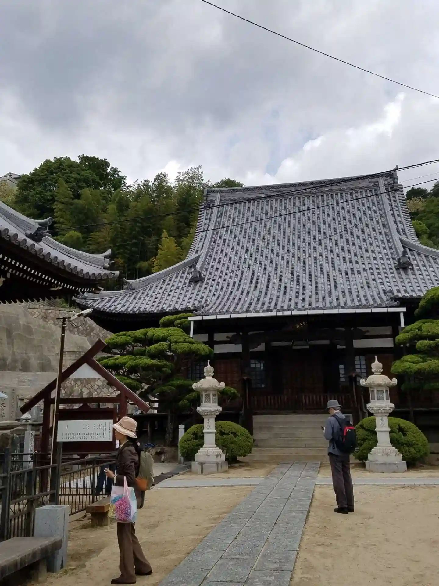 本堂前の石灯籠が印象的、屋根も良い感じ