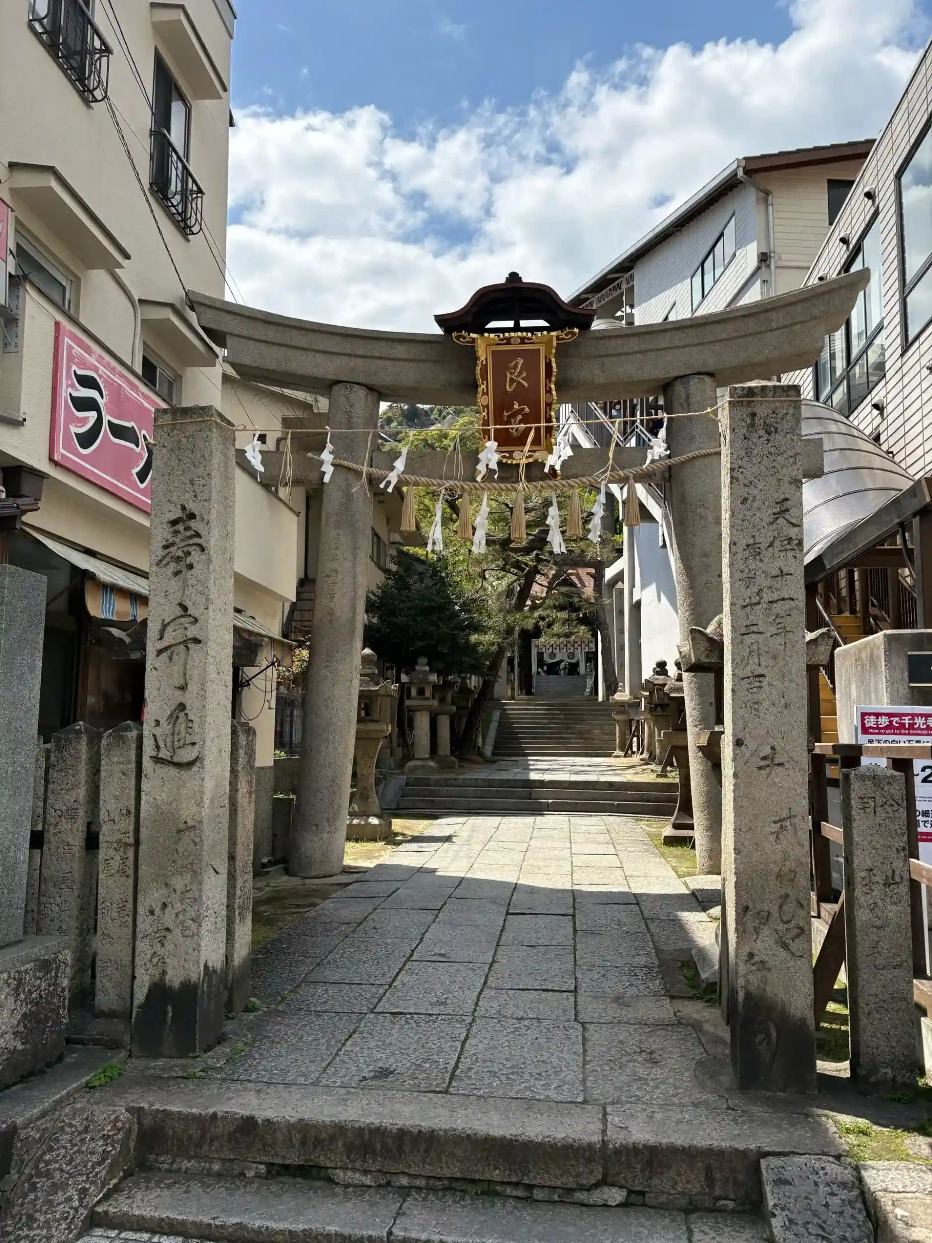 大林宣彦監督監督作品の「時をかける少女」や「ふたり」のロケにも使われ、アニメかみちゅにも描かれている神社らしく、聖地巡礼と行った所でしょうか。