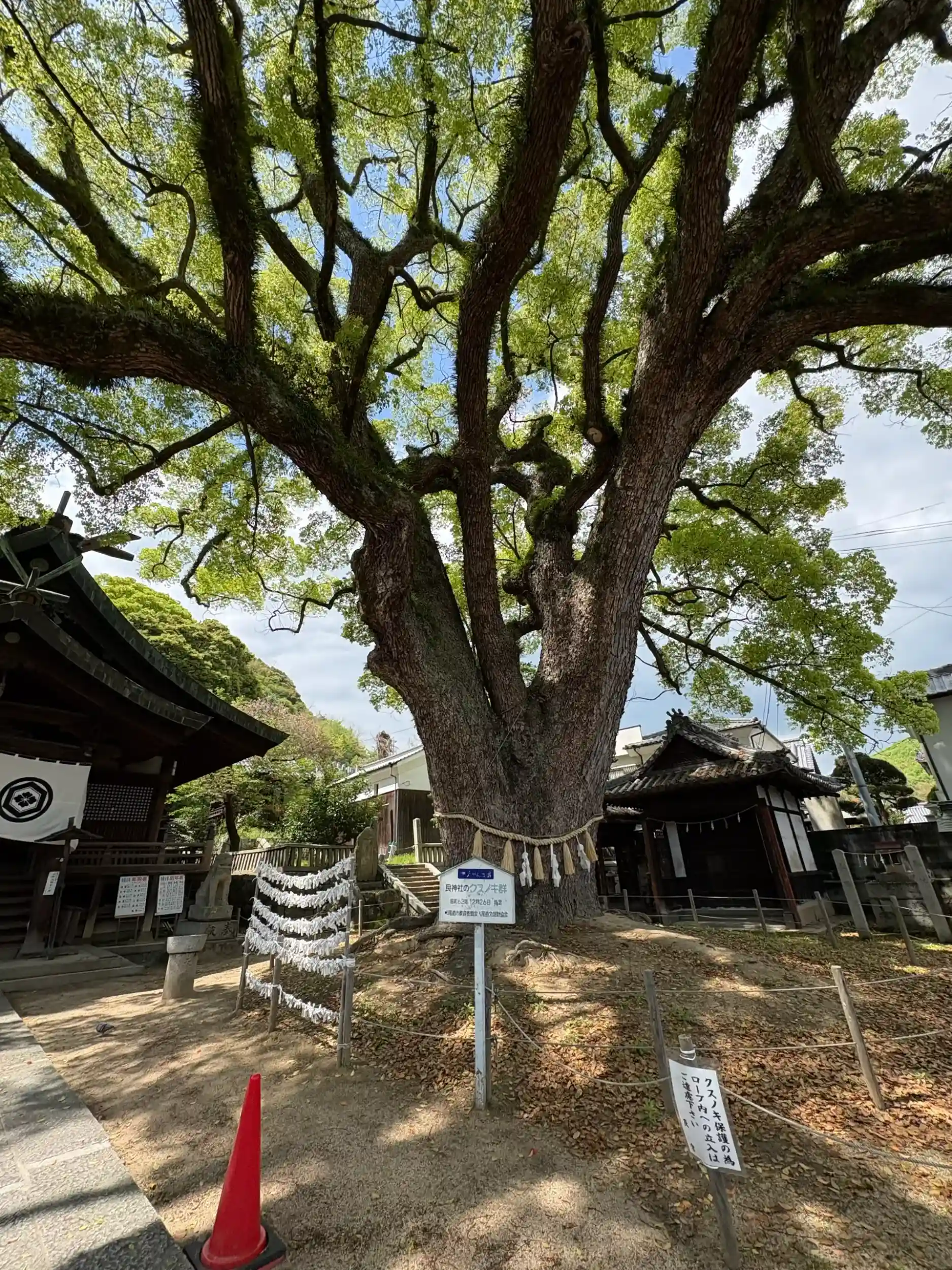 福山の艮神社も立派でしたが、こちらのお社も趣があり悠久の時を感じます。横にあるロープウェイ乗り場は混んでますが、境内はそれほどでもなくゆっくりと過ごせました。境内にある樹齢900年を越える楠に圧倒されます。