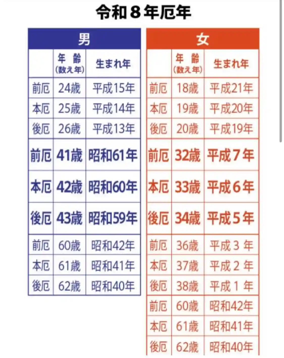 厄年表・八方除表を掲載しております。