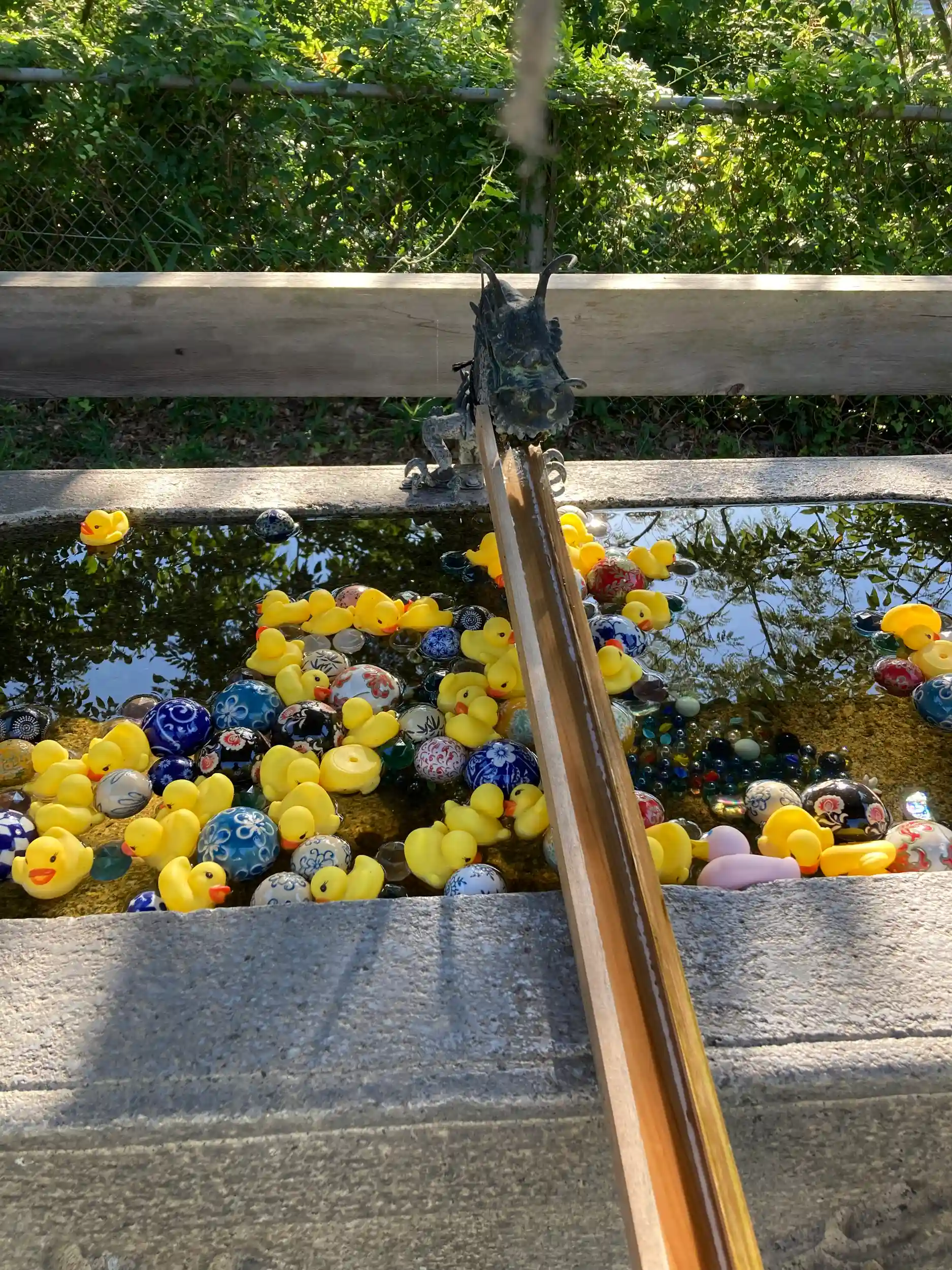 また手水舎はビー玉とアヒルのおもちゃでデコレーション。