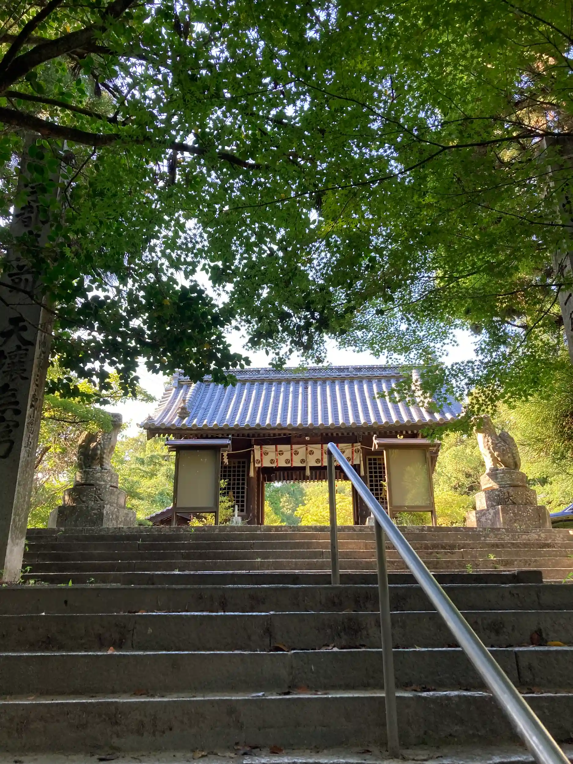 2日目の最終 三原八幡宮。賀羅加波神社から距離はありますが、ずっと下り。GoogleMap頼りに到着すると鳥居の前へ。鳥居を抜けてからの石段はかなりの数あり随身門を抜けて社殿へ。