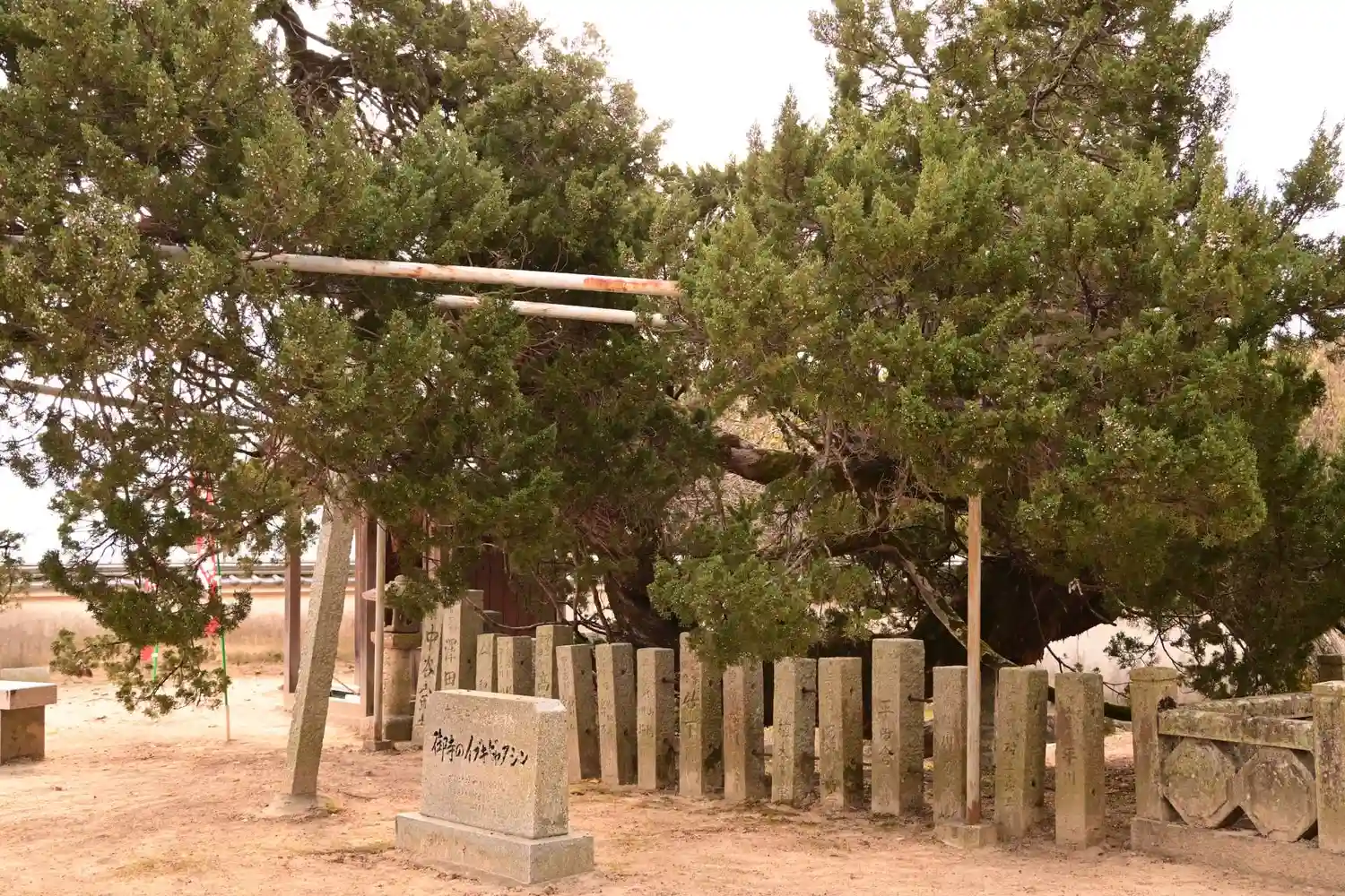 枝が境内地を越え畑へ延びていき日がかげることを心配した村人が大樹の枝を払うことを相談していましたが、一夜にして枝が向きを変え境内へと延びていったといわれています。