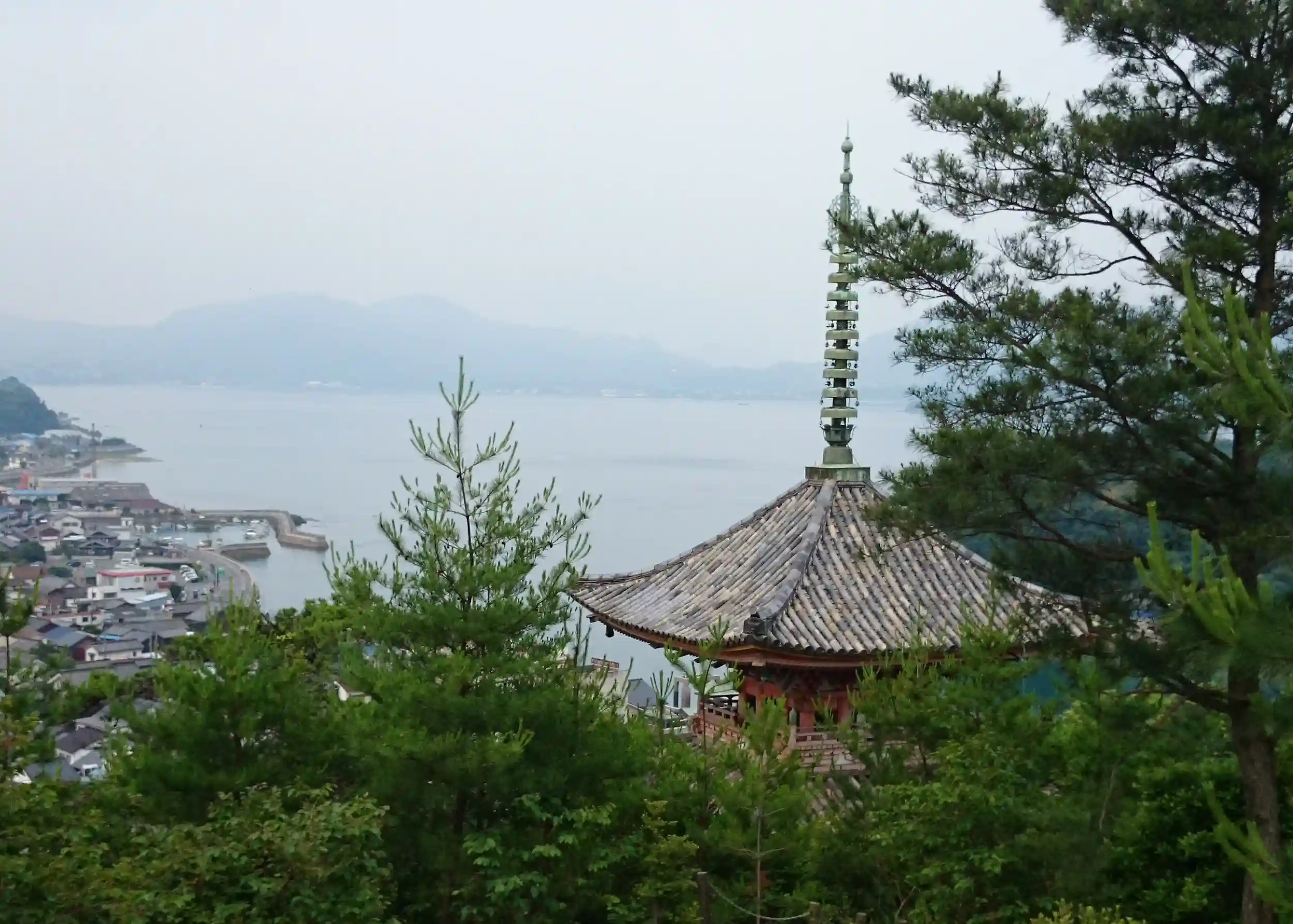 ・生口島へは尾道から船で約40分。朱塗りの綺麗な塔でした。平山郁夫画伯も描いた風景です。