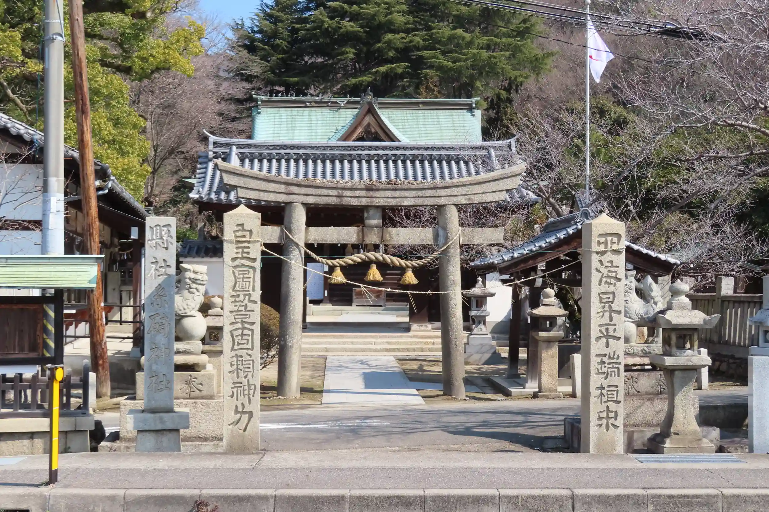 注連柱、鳥居、神門、拝殿