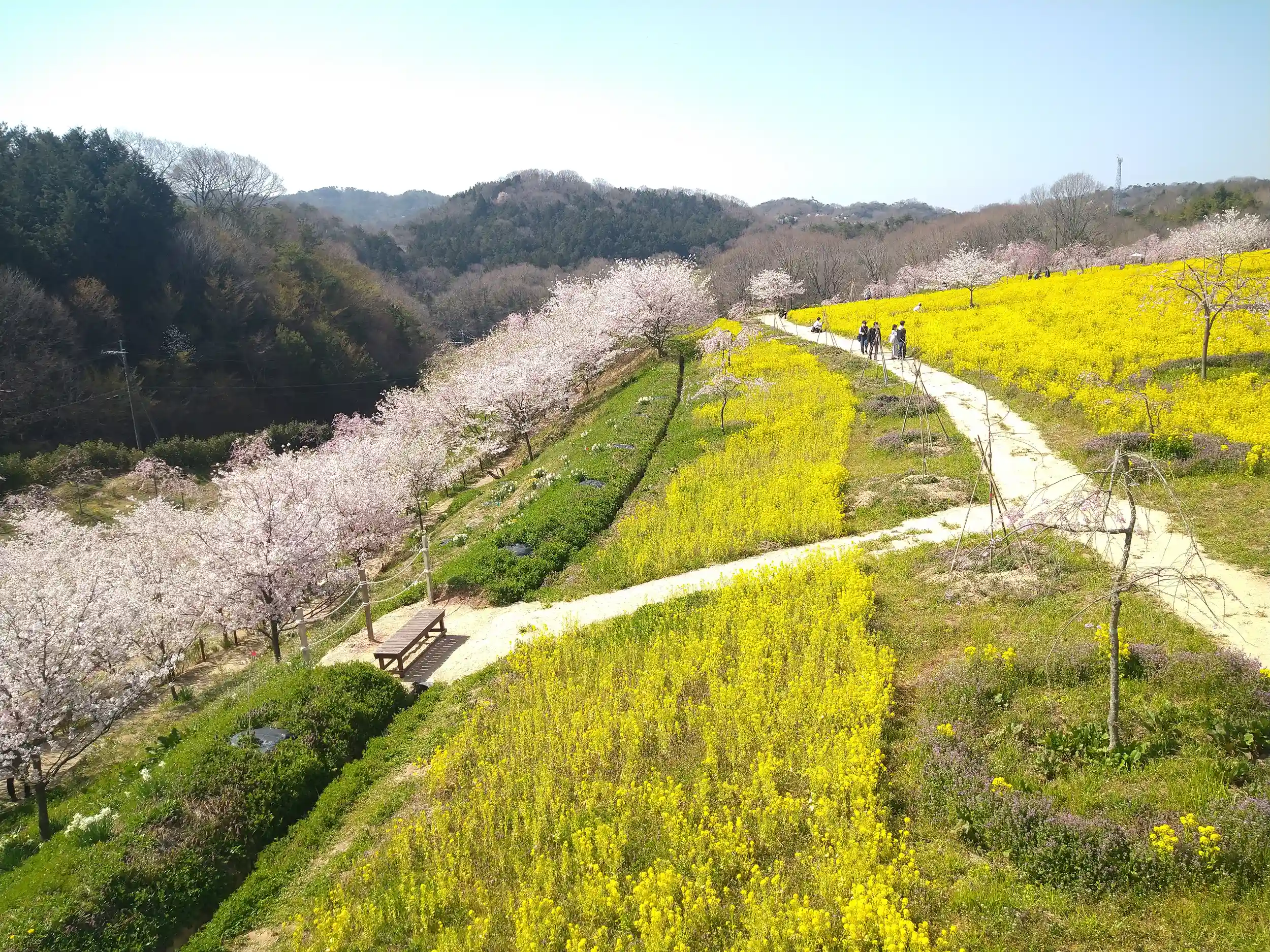 菜の花畑と桜
