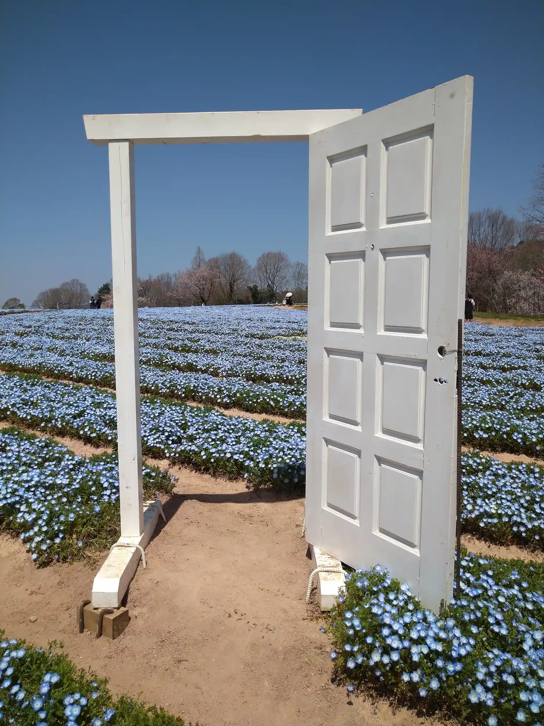 撮影スポット 白いドアとネモフィラ