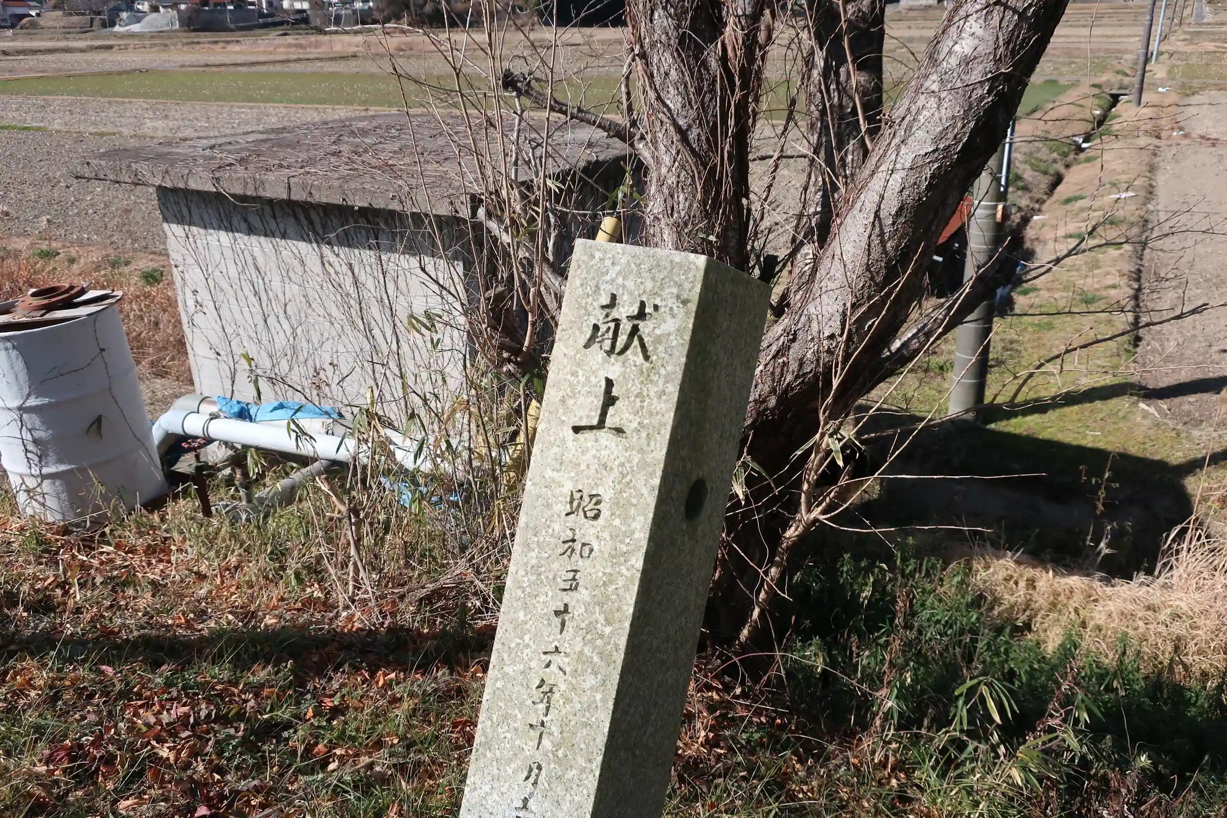 寄進された石柱があり、昭和のものははっきりと読めますがまったく読めないものもありました。祠は綺麗に手入れされており氏子さんたちに大切に守られていることを感じました。