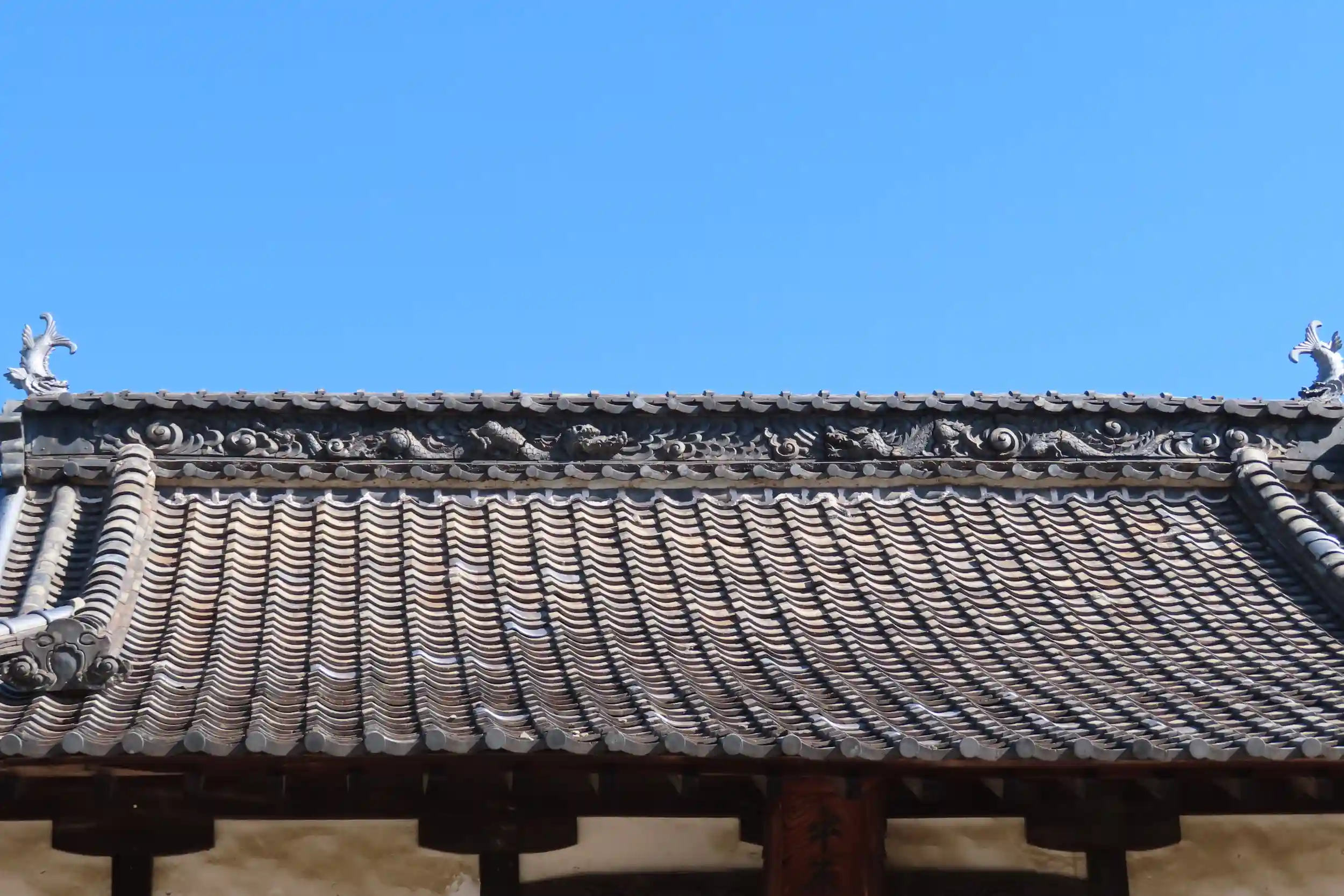拝殿の瓦を見ると主棟には龍の瓦が使われているように見えました。