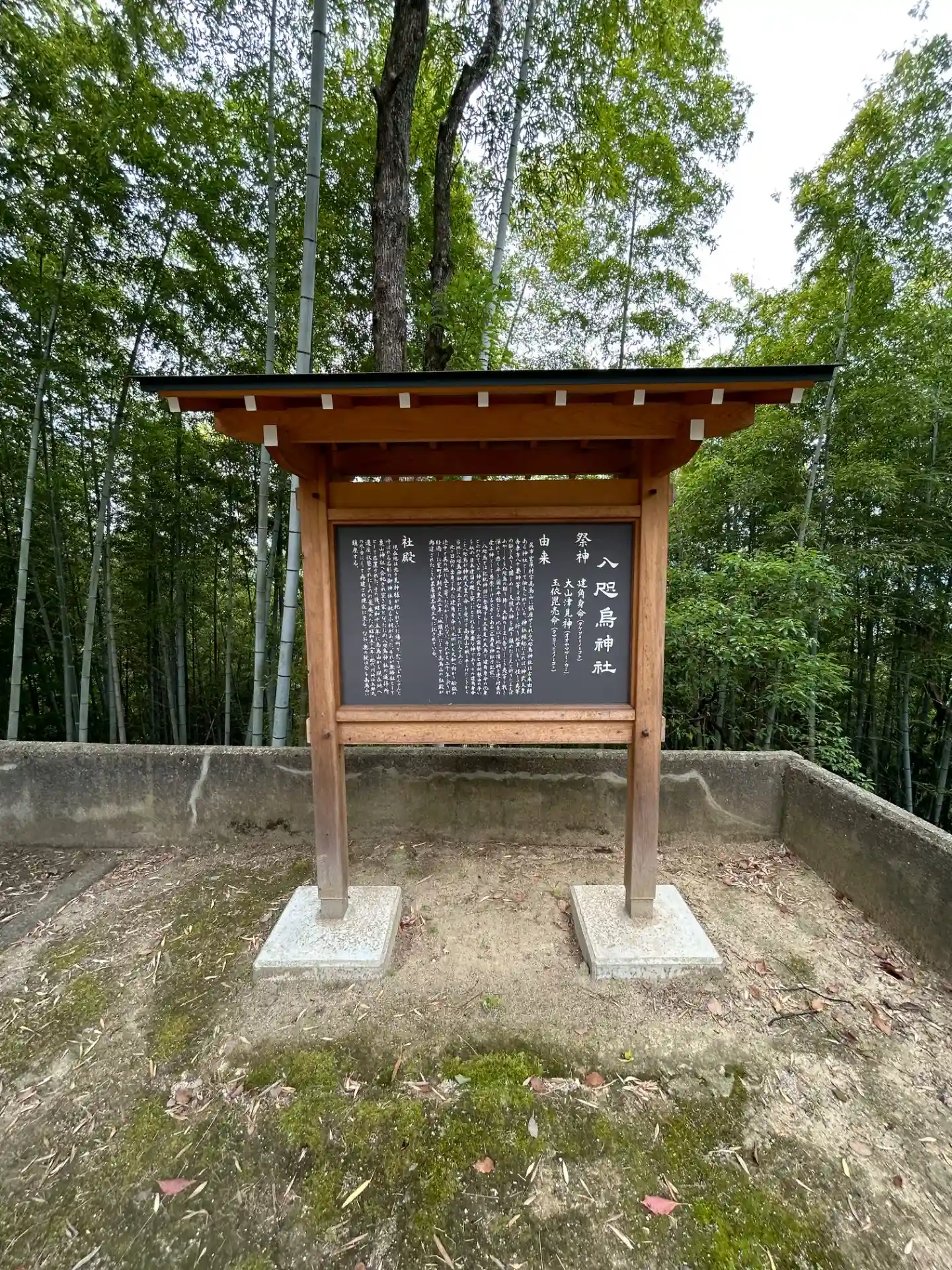 創祀 古来より由緒ある神社と伝えられ神社縁起によれば「神武天皇吾妻八十梟師等を治めたもう折り、此里にもいと怪しき夷等の騒ぎありと聞きしめし天照大神を祀り鎮めたまえと祈りたまえばあやしくも八咫烏の翔り降り大勅のままに告げしより夷等も戦き懼れて悉く平ぎ国土平穏となる。此を似て此山の頂に祠を建て、村県の産土神として尊崇しける。現在の社殿は以前に荒神を祀ったもので無格社として亀山神社に合祀され空き家になったので遙拝所として存置された。本殿(奥の院)は今も高鳥山に在る。八咫烏神社奥の院は神武天皇東征の折、八咫烏がご先導の道を尋ね、翼を休めたという伝説の地。