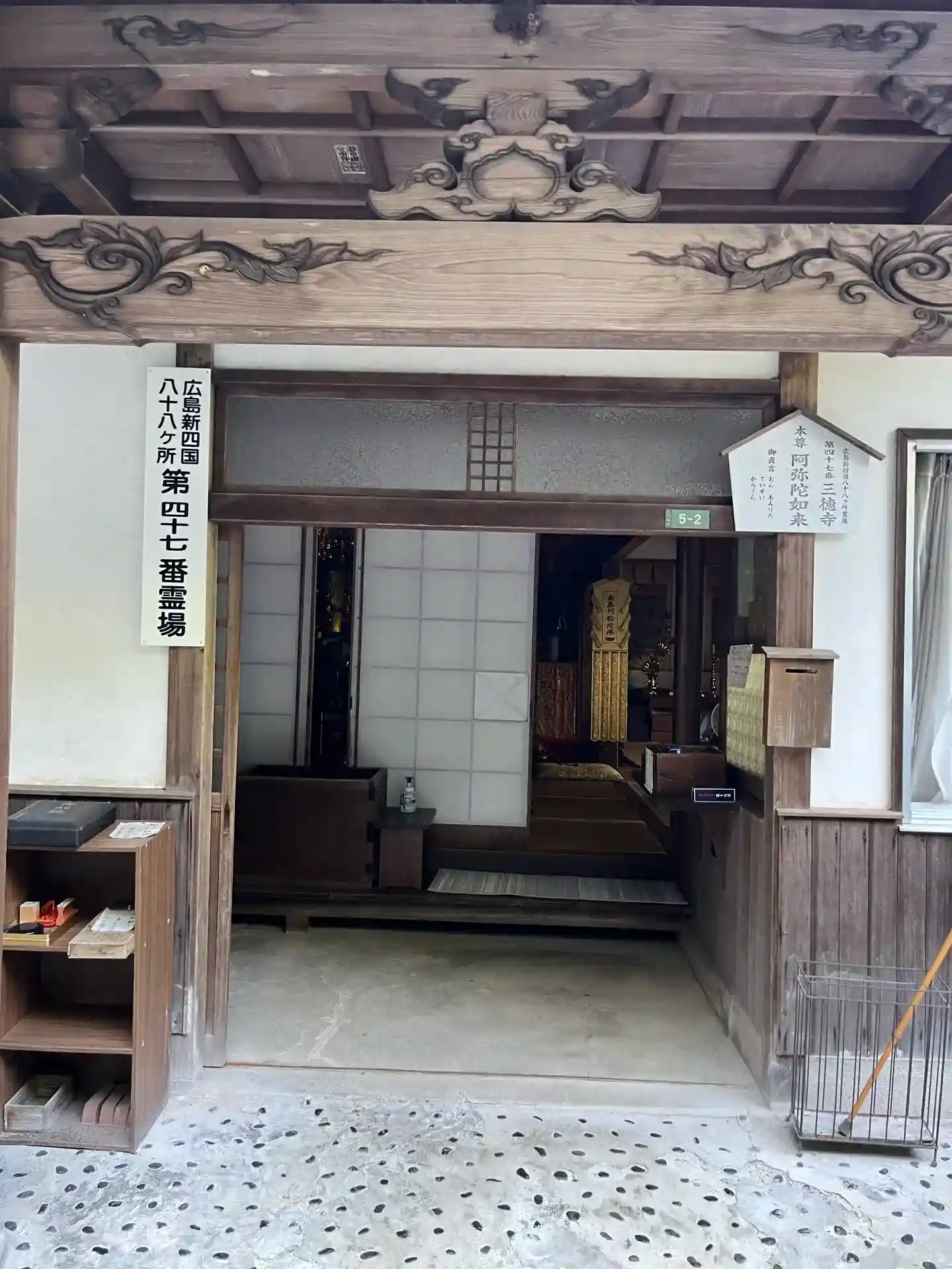 広島新四国八十八ヶ所霊場四十七番所三徳寺へお参り🙏駐車場が見当たらず電話で聞いてみると狭い道を上がって下さいと😅 通れますか❓と尋ねた所2トントラック🚚までなら通れるとの事マジか😳ギリギリ通れた😅駐車場は4〜5台停めらる広さがありました🅿️なんとかお参り出来ました😊